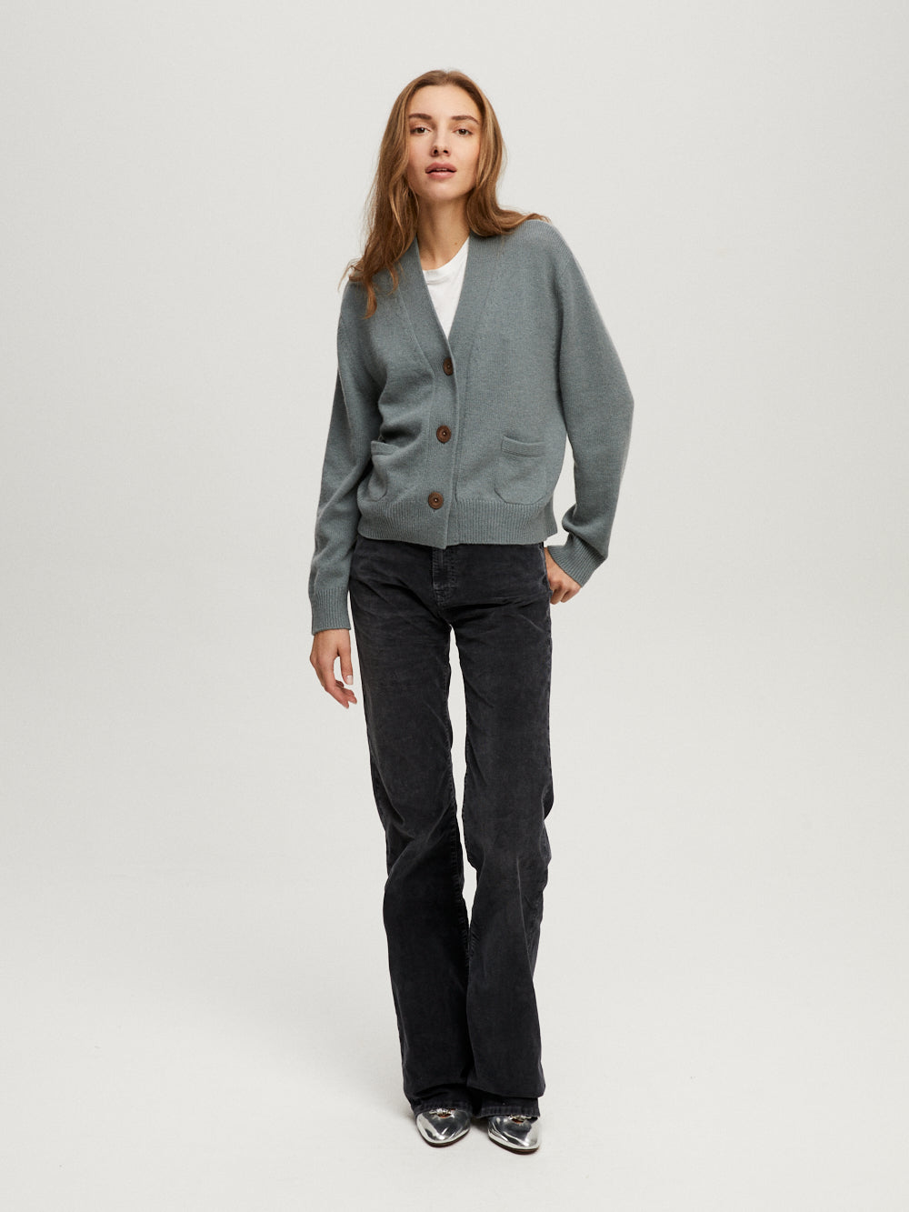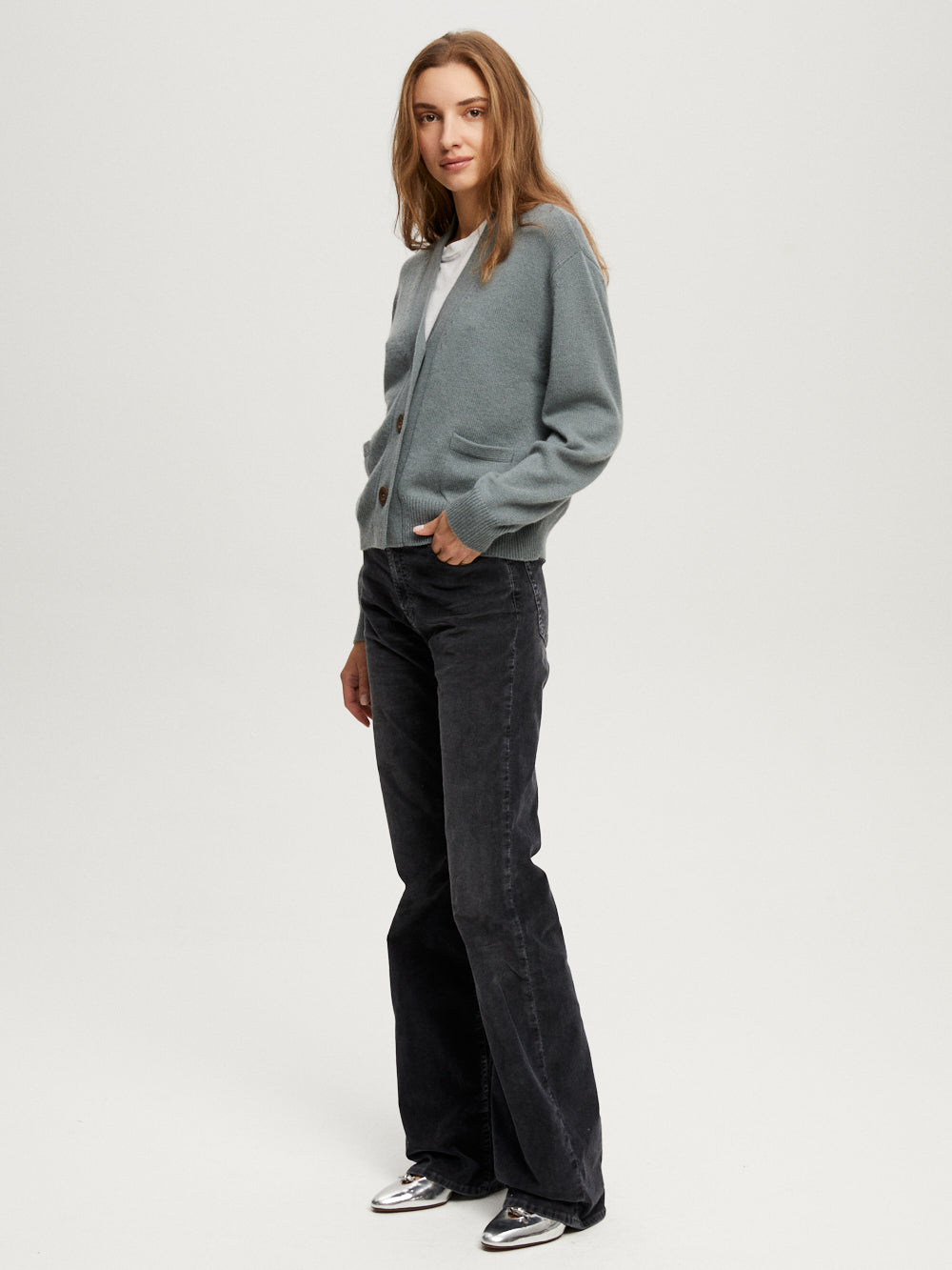 Le cardigan Lou Velours BY MARIE Collection est réalisé en cachemire et laine. Les cachemires BY MARIE sont réalisés en série limitée à la main et à l’aide d’une machine à tricot ancienne dans une organisation au Népal qui existe depuis 20 ans. Cette entreprise est composée essentiellement de femmes et comme nous, a à cœur la transmission d’un savoir faire de qualité.