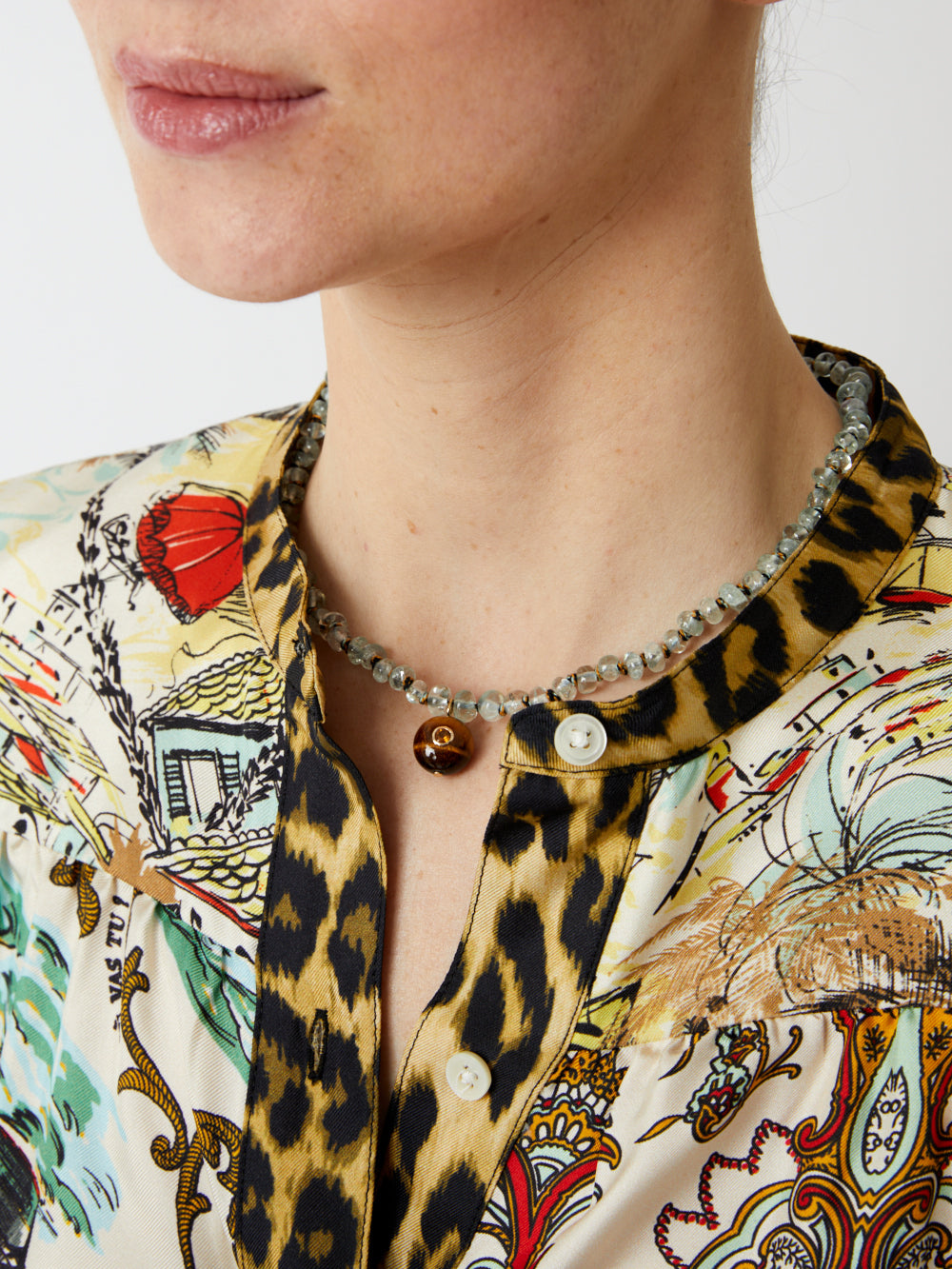 COLLIER PERLES AIGUE-MARINE ET OEIL-DE-TIGRE