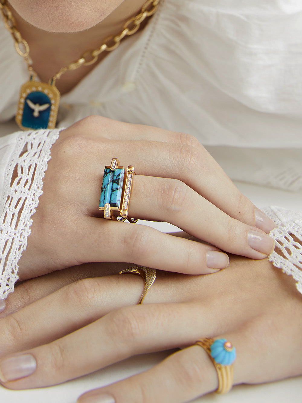 BAGUE GELATO TURQUOISE ET TOURMALINE