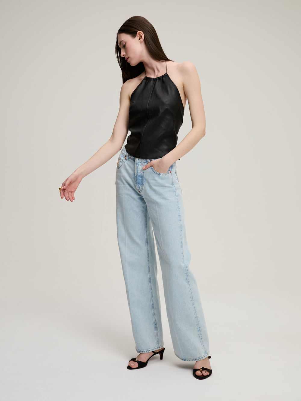 - Fermeture zippée dissimulée à l'avant accompagné d'un bouton doré au logo de la marque