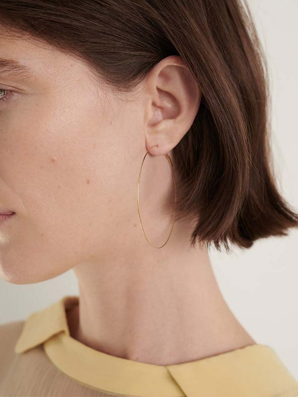 Ces boucles d'oreilles Hoop taille large signées Kathleen Whitaker sont confectionnées en or jaune 14 carats. Une pièce chic et intemporelle.
