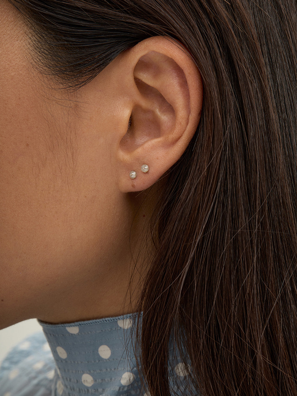 Puce diamant brut signée Kathleen Whitaker aux finitions en or jaune 14 carats. Une boucle simple et délicate.