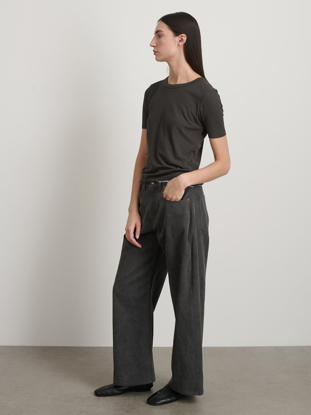 T-Shirt Double signé B Sides confectionné en coton avec un côté gris anthracite et un côté bleu ciel. Un T-shit à manches court réversible pouvant également se porter avec les manches retroussées pour un contraste de couleur.
