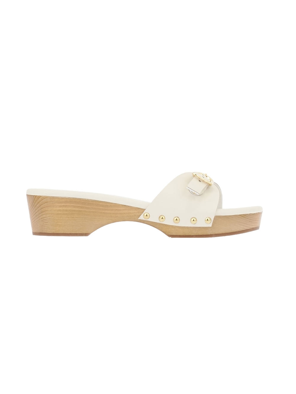 Sabot Omonia Ancient Greek Sandales. Ces sabots sont inspirés des modèles classiques des années 70, avec leur épaisse semelle en bois incurvée et leurs clous brillants. Ils sont réalisés à la main en Grèce à partir de cuir et s'ajustent grâce à une fermeture boucle dorée qui prend la forme de l'aile signature de la marque. Ce modèle taille petit, prenez une pointure au-dessus de votre pointure habituelle.