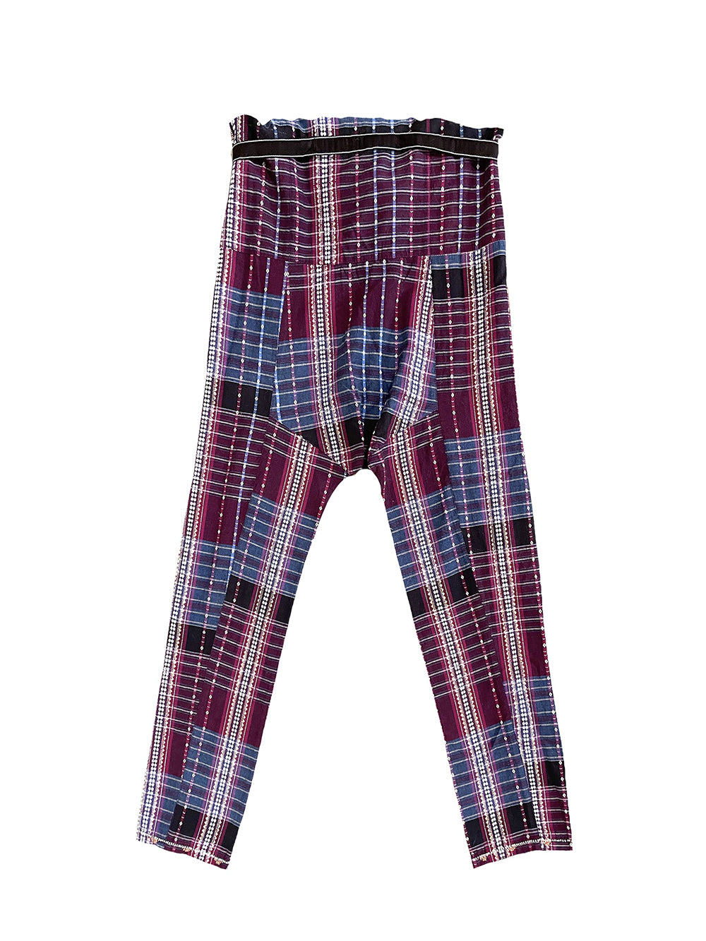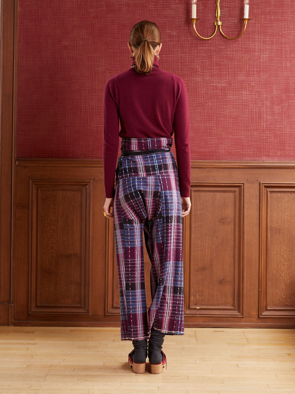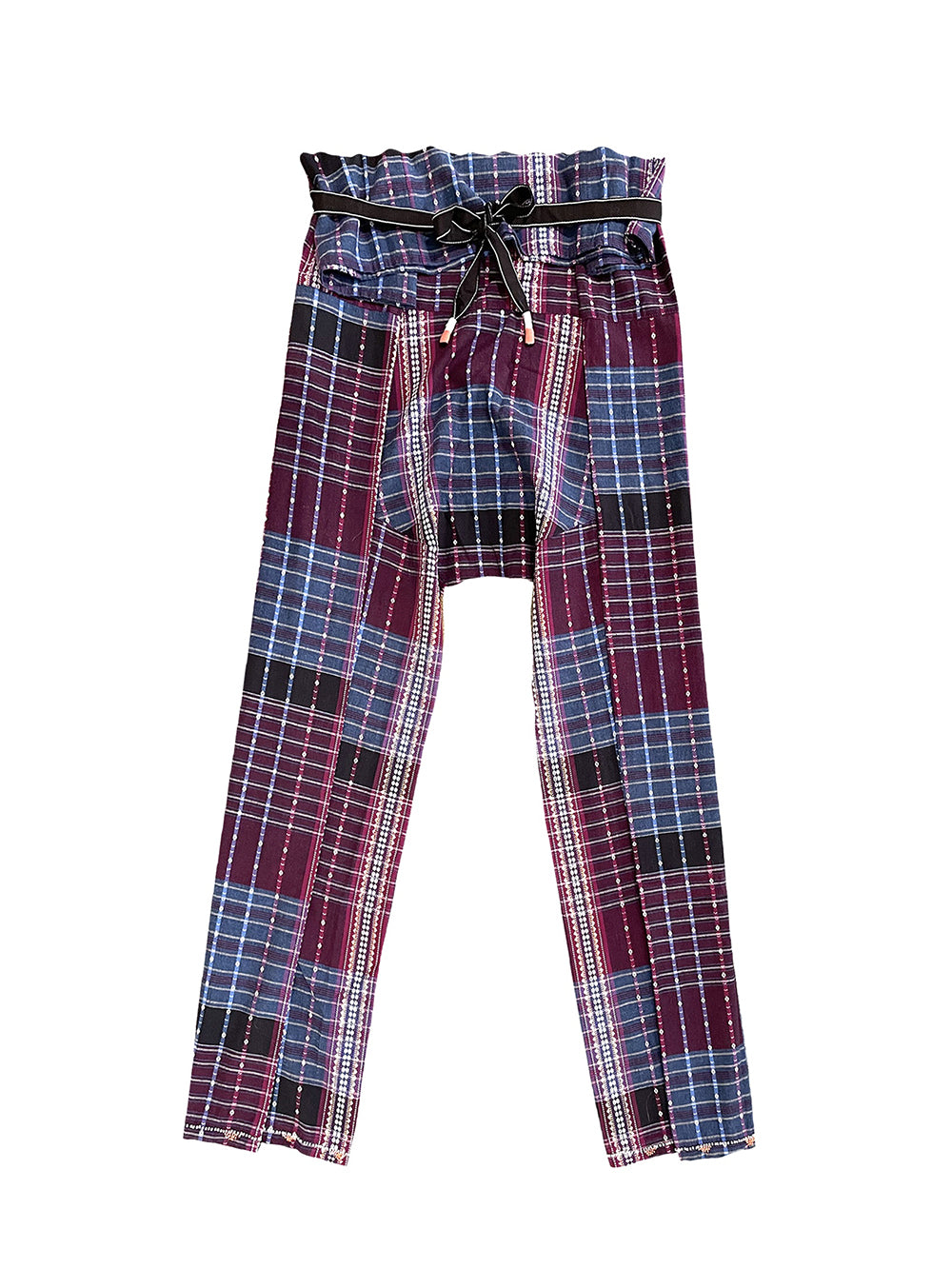 Pantalon Thaï Monoki. Ce pantalon oversize en patchwork de coton à imprimés fleuris a une très taille haute qui se porte à revers. Le modèle se resserre à la taille grâce à une ceinture à nouer.