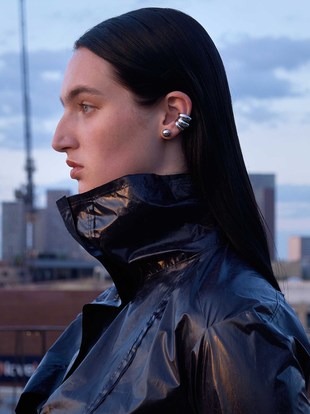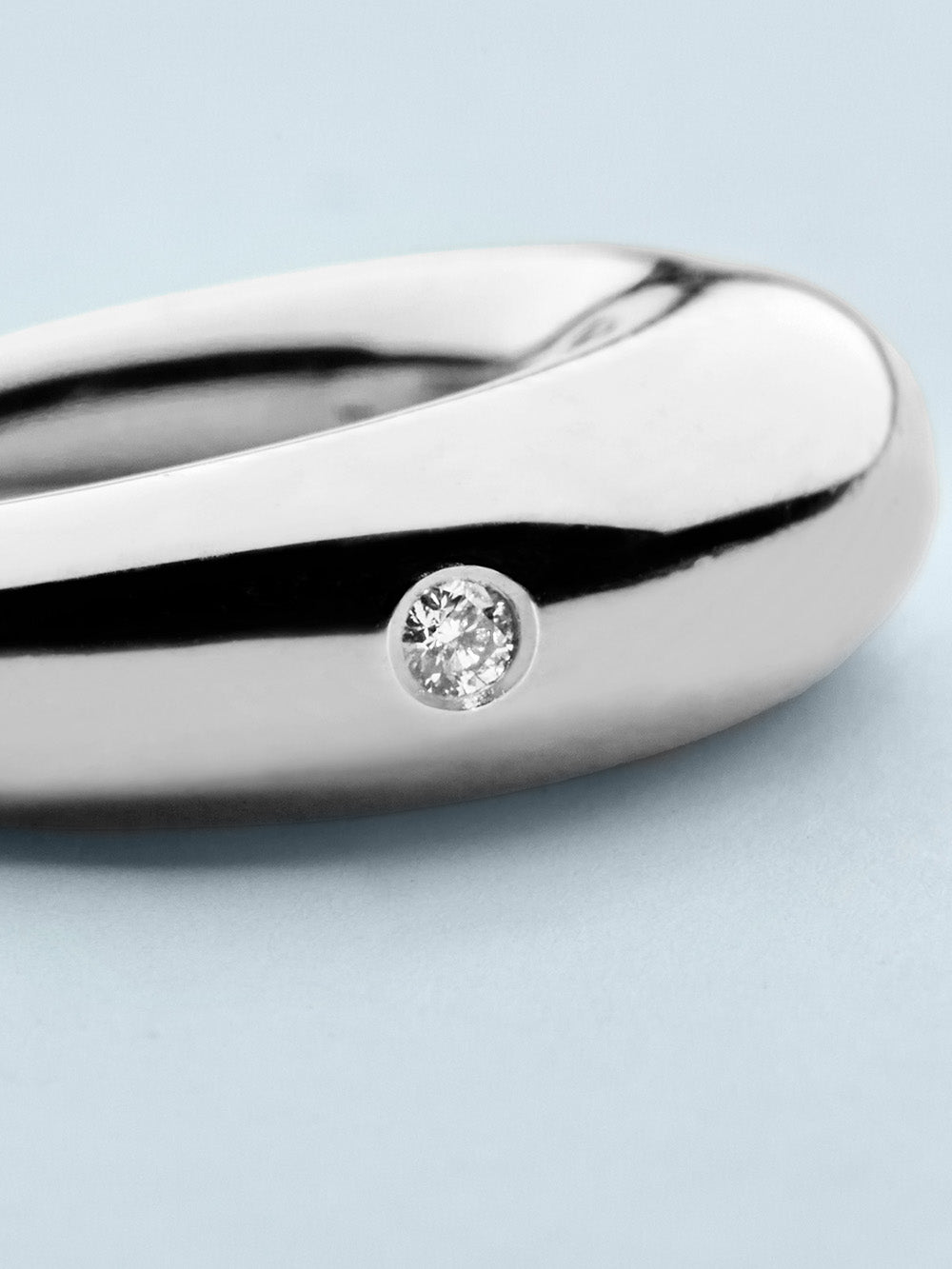 Luminous 27 Criolla Chiquita Ear Cuff crafted from rhodium-plated 925 silver decorated with a brilliant-cut diamond on the side. An ear cuff with a domed design that sits delicately on the side of the ear.