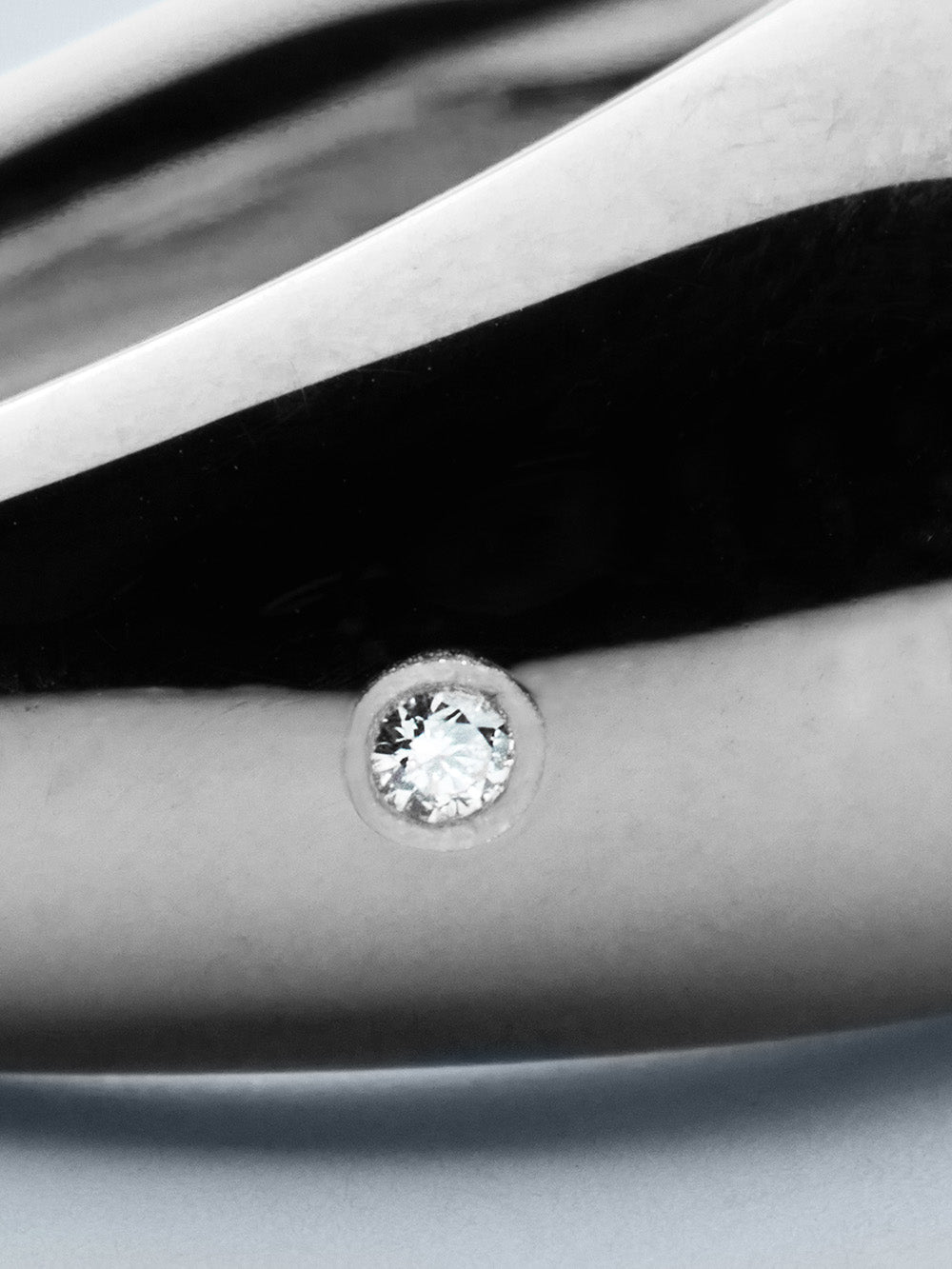 Luminous 27's Eduardo Grande ring is crafted from rhodium-plated 925 silver and decorated with a brilliant-cut diamond on the side. A modern and timeless curved design.