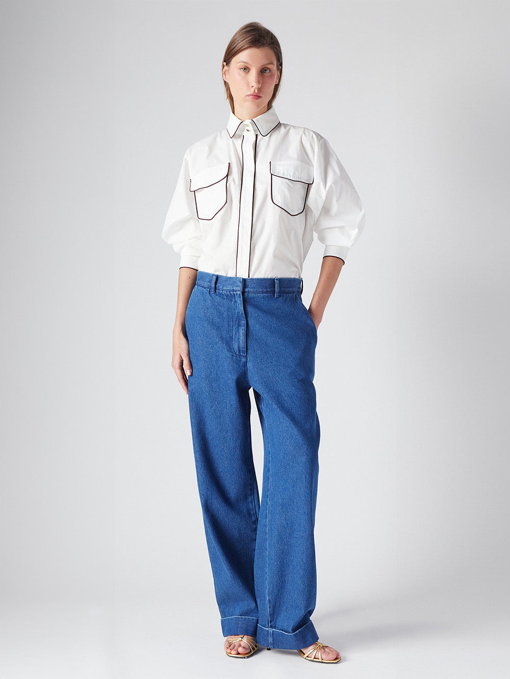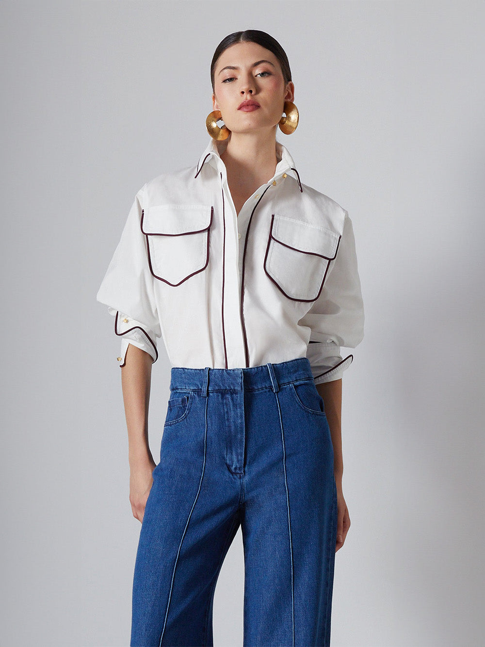Wayne Garnet shirt by The Label Edition, crafted from white cotton with contrasting burgundy trim. A straight-cut shirt inspired by the American West.