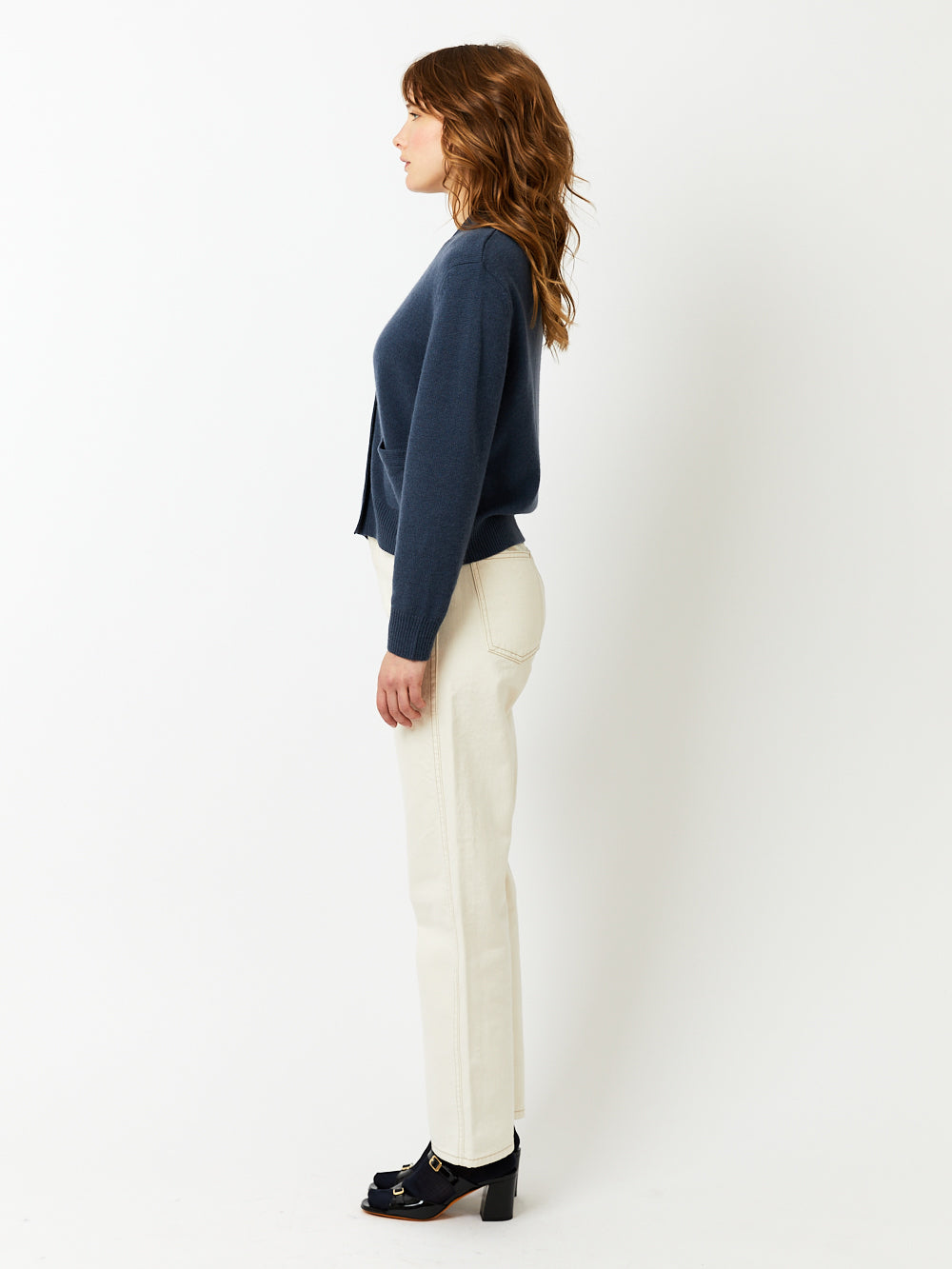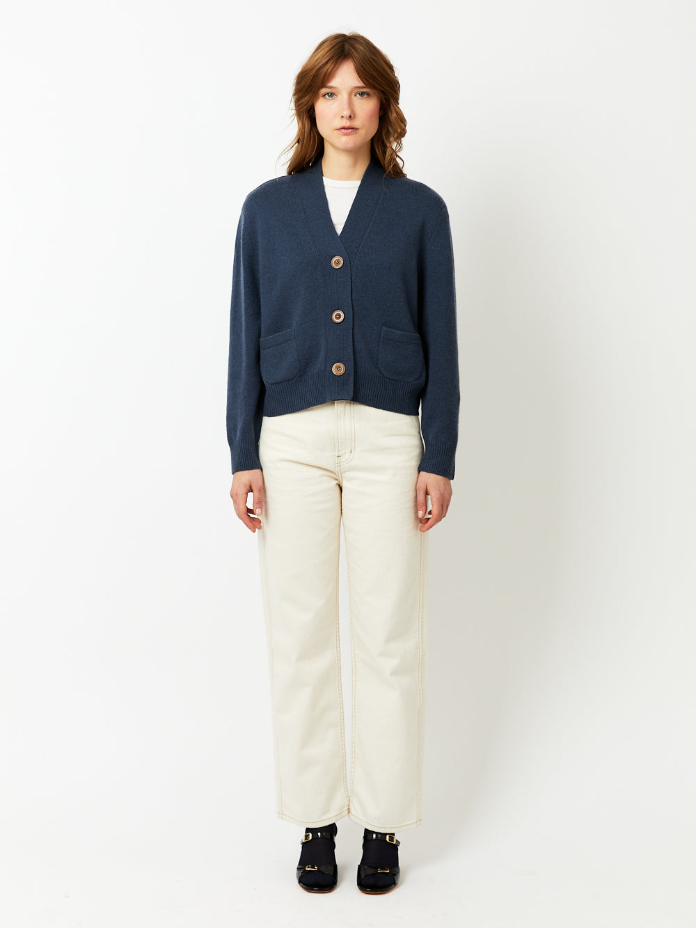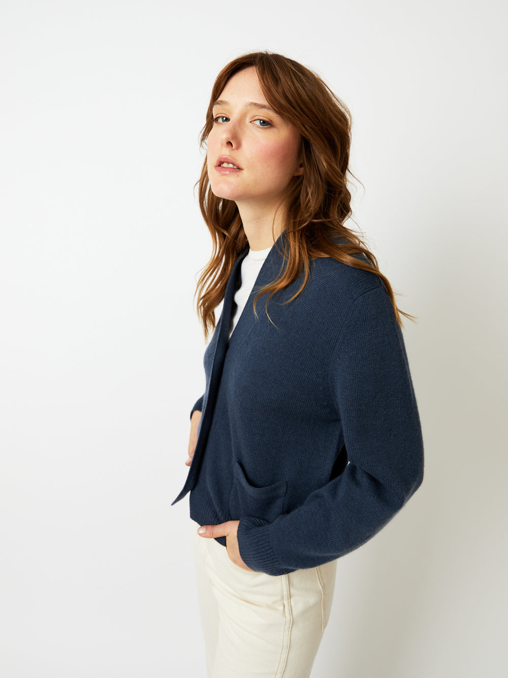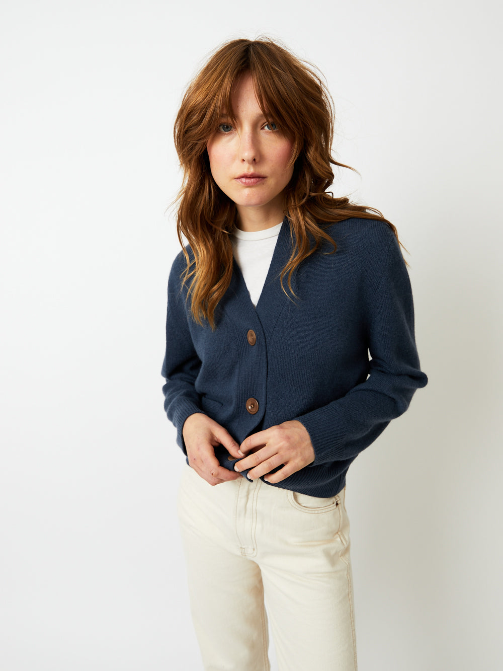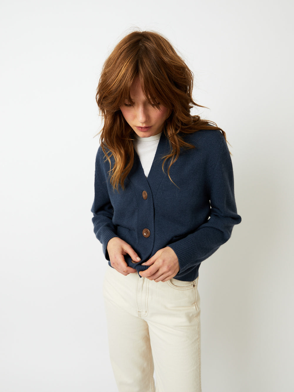 The Lou Plomb BY MARIE Collection cardigan is made of cashmere and wool. BY MARIE cashmeres are made in limited series by hand using an old knitting machine in an organization in Nepal that has existed for 20 years.