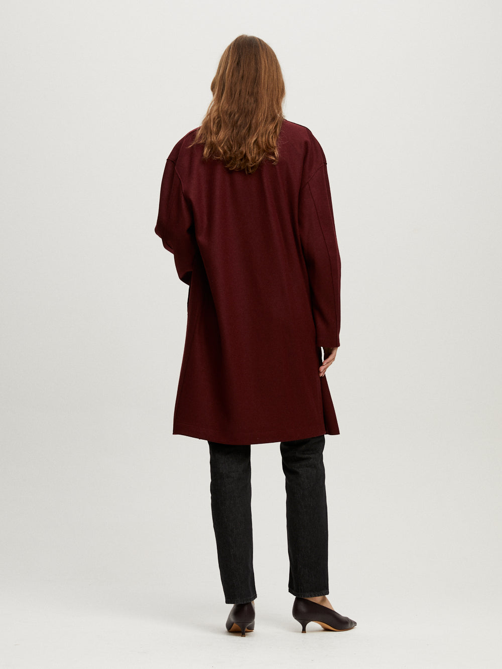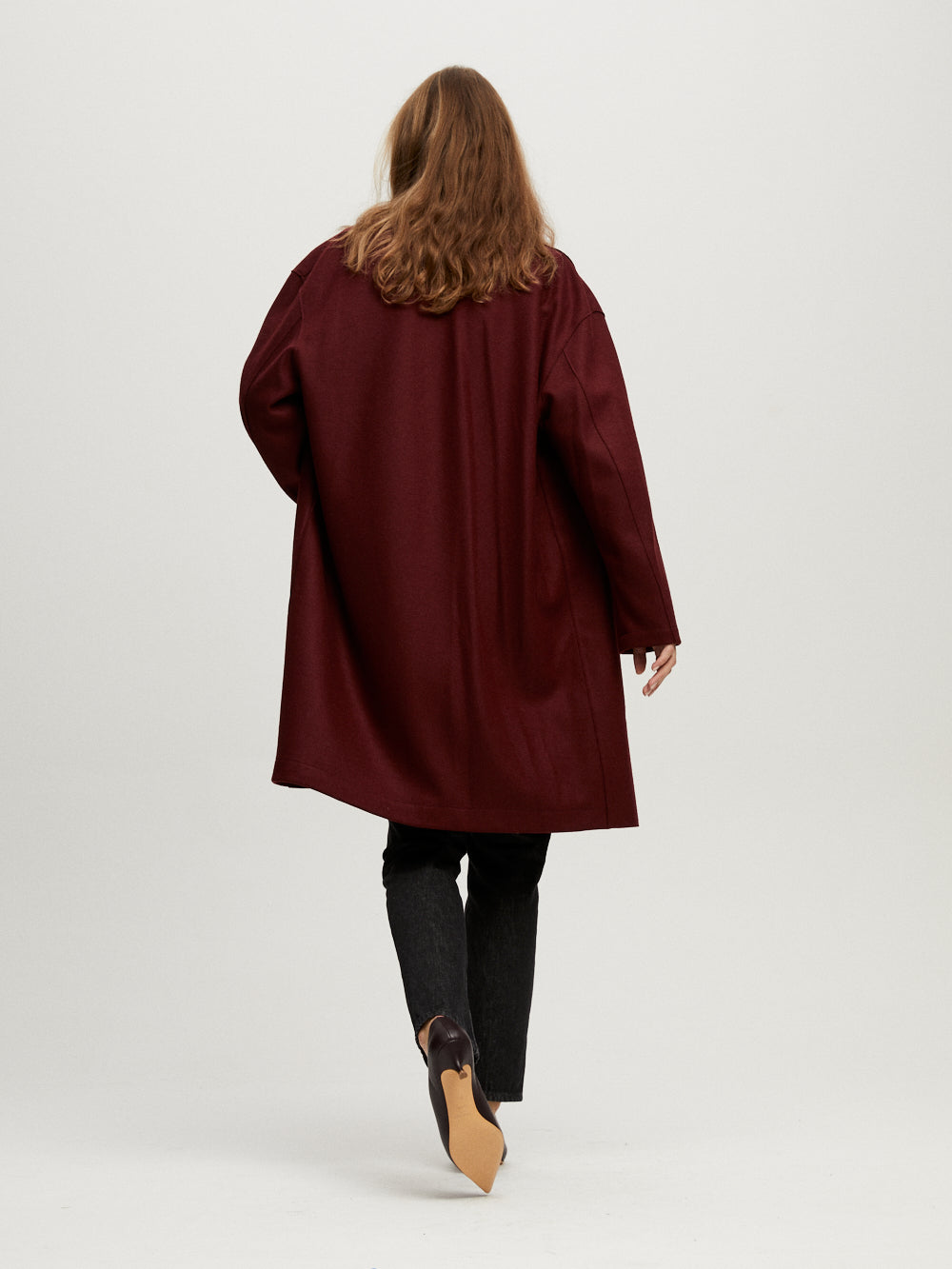Oversized coat by Harris Wharf London made from an olive green wool and cashmere blend. A mid-length coat with dropped shoulders and a buttoned front closure.