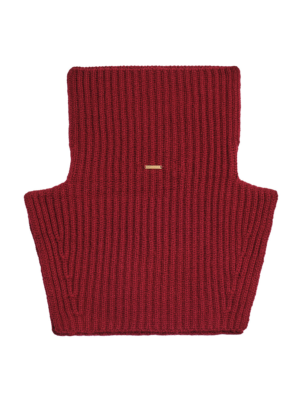 Grace BY MARIE Collection collar. This cashmere and wool collar can be worn under your sweaters or coats. A gold plaque embossed with the BY MARIE logo is sewn on the back of the collar.