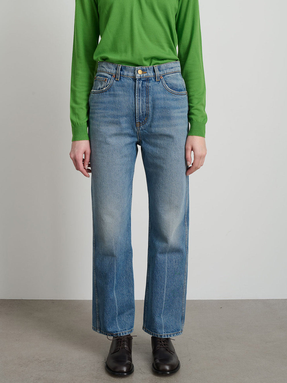 BSIDES's Jane Wash Full Jeans feature a straight leg with a high waist and slightly flared, cropped legs. Designed in New York City and responsibly made in Los Angeles.
