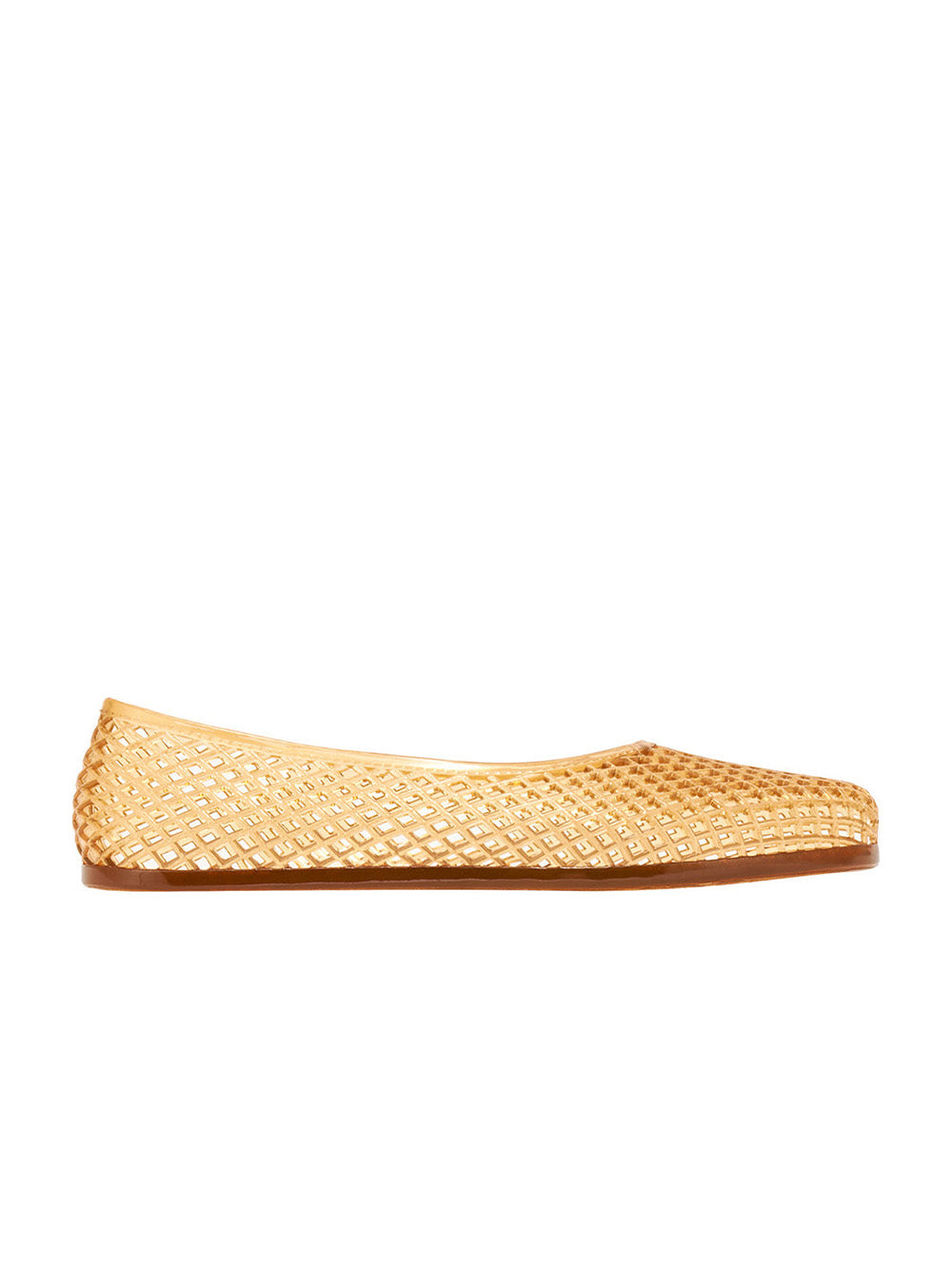 Ancient Greek Sandals' Iro Jelly sandals are crafted from caramel-colored PVC. A breathable ballerina style that can be worn in water and sand. A beach essential.