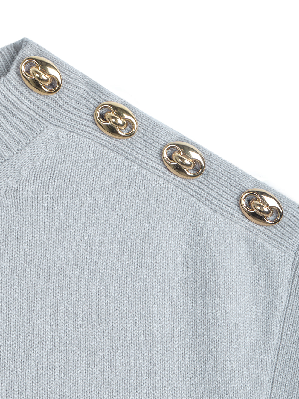 Pull Mini Gregor signé BY Marie Collection confectionné dans un mélange de laine et cachemire de couleur gris clair. Les cachemires BY MARIE sont réalisés en série limitée à la main et à l’aide d’une machine à tricot ancienne dans une organisation au Népal qui existe depuis 20 ans. Cette entreprise est composée essentiellement de femmes et comme nous, a à coeur la transmission d’un savoir faire de qualité.