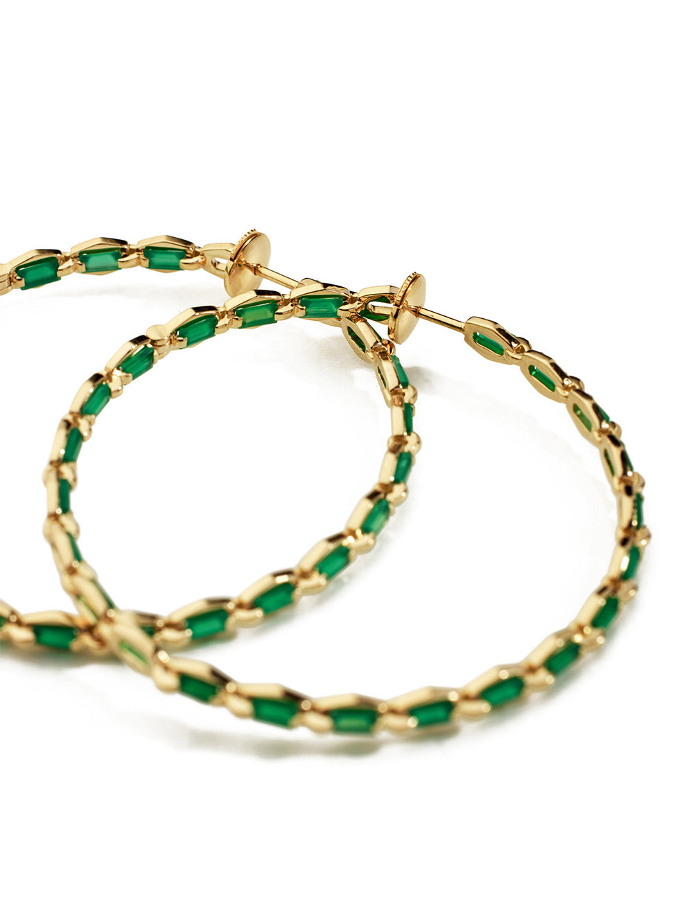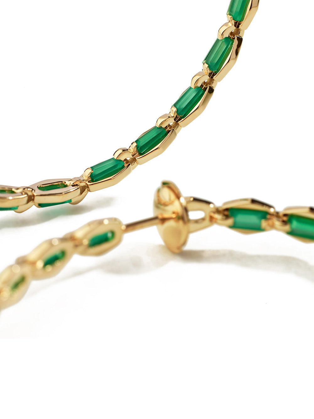 Generosity XXL earrings by Lito, crafted in 14-karat yellow gold and set with baguette-cut green agates. A design inspired by jewelry chains.