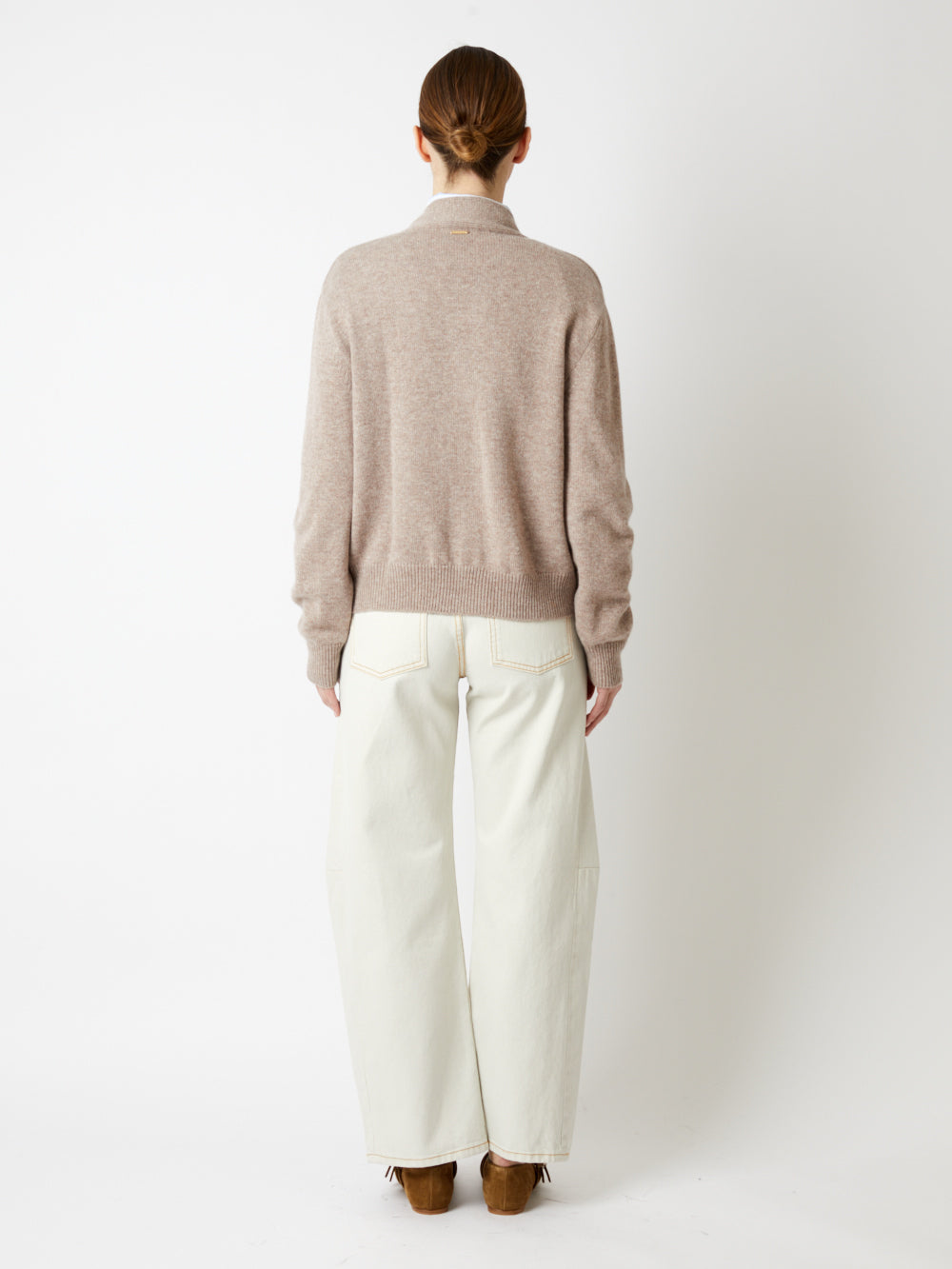 Cashmere is a material that loves water; it needs it to keep its softness and suppleness. To maintain it, we recommend washing it in the washing machine in a net wool program (20°) or in cold water with a shampoo for cashmere knitwear with a gentle spin (max 500 rpm) You can also wash it gently by hand.