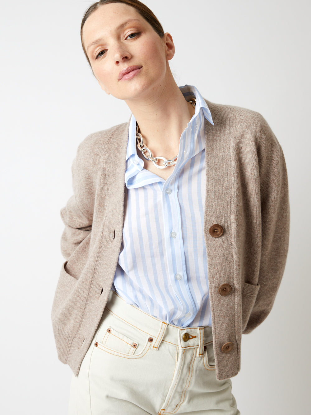 The Lou BY MARIE Collection cardigan is made of 100% cashmere. BY MARIE cashmeres are made in limited series by hand and using an old knitting machine in an organization in Nepal that has existed for 20 years. This company is mainly made up of women and, like us, is committed to passing on quality know-how.