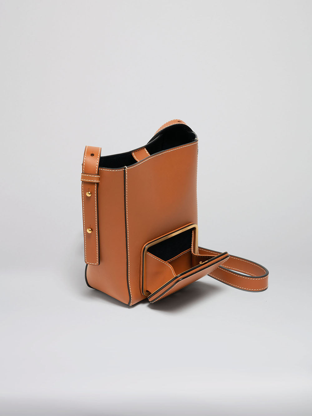 This Parker Software M bag from the brand of the lutz Morris is of camel color.