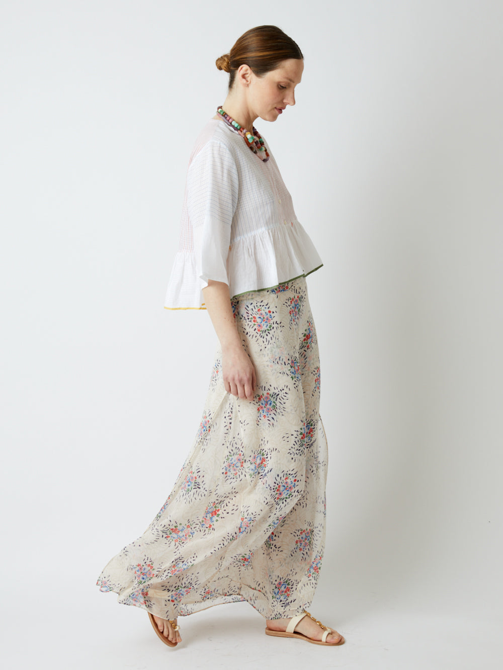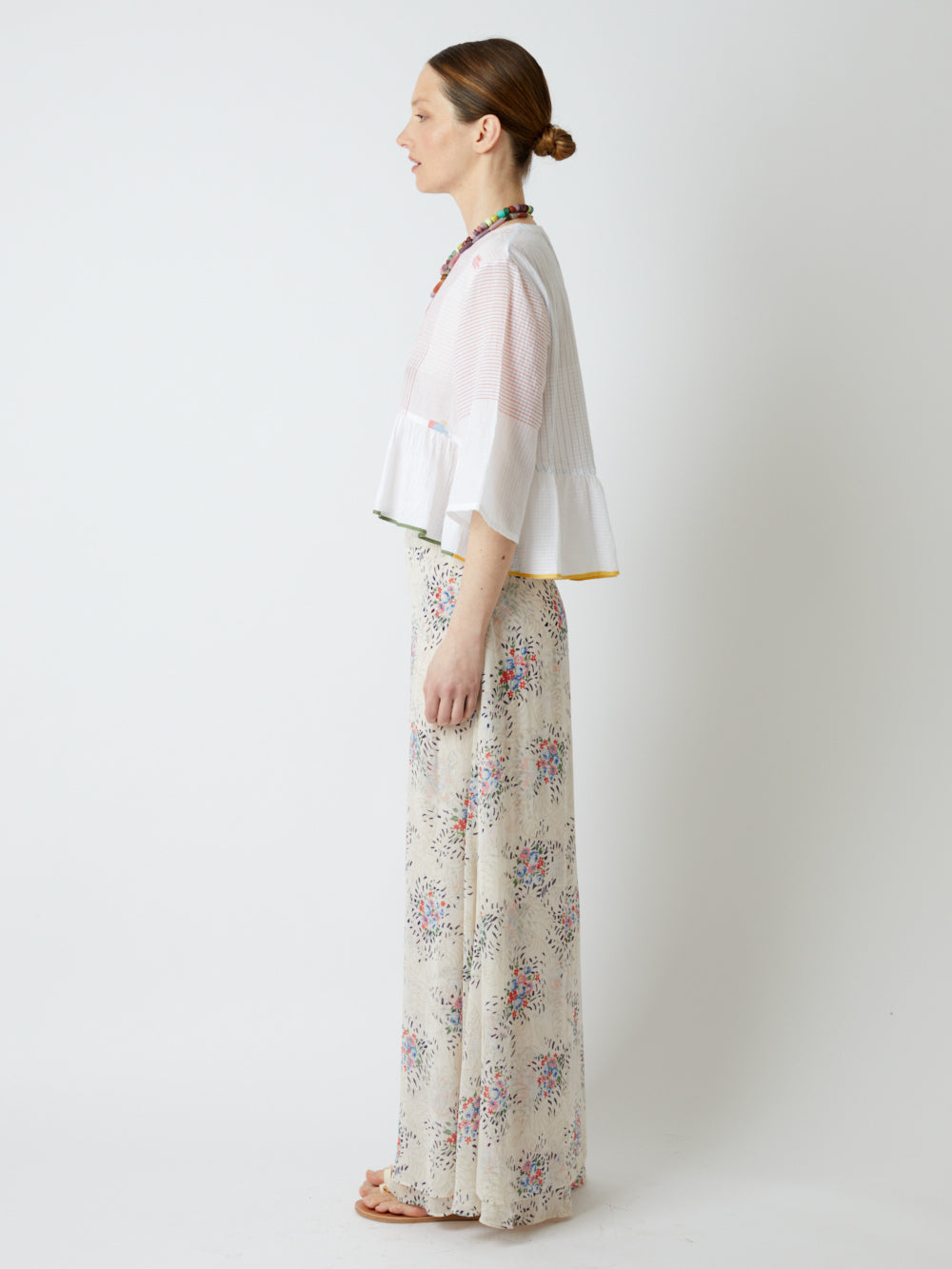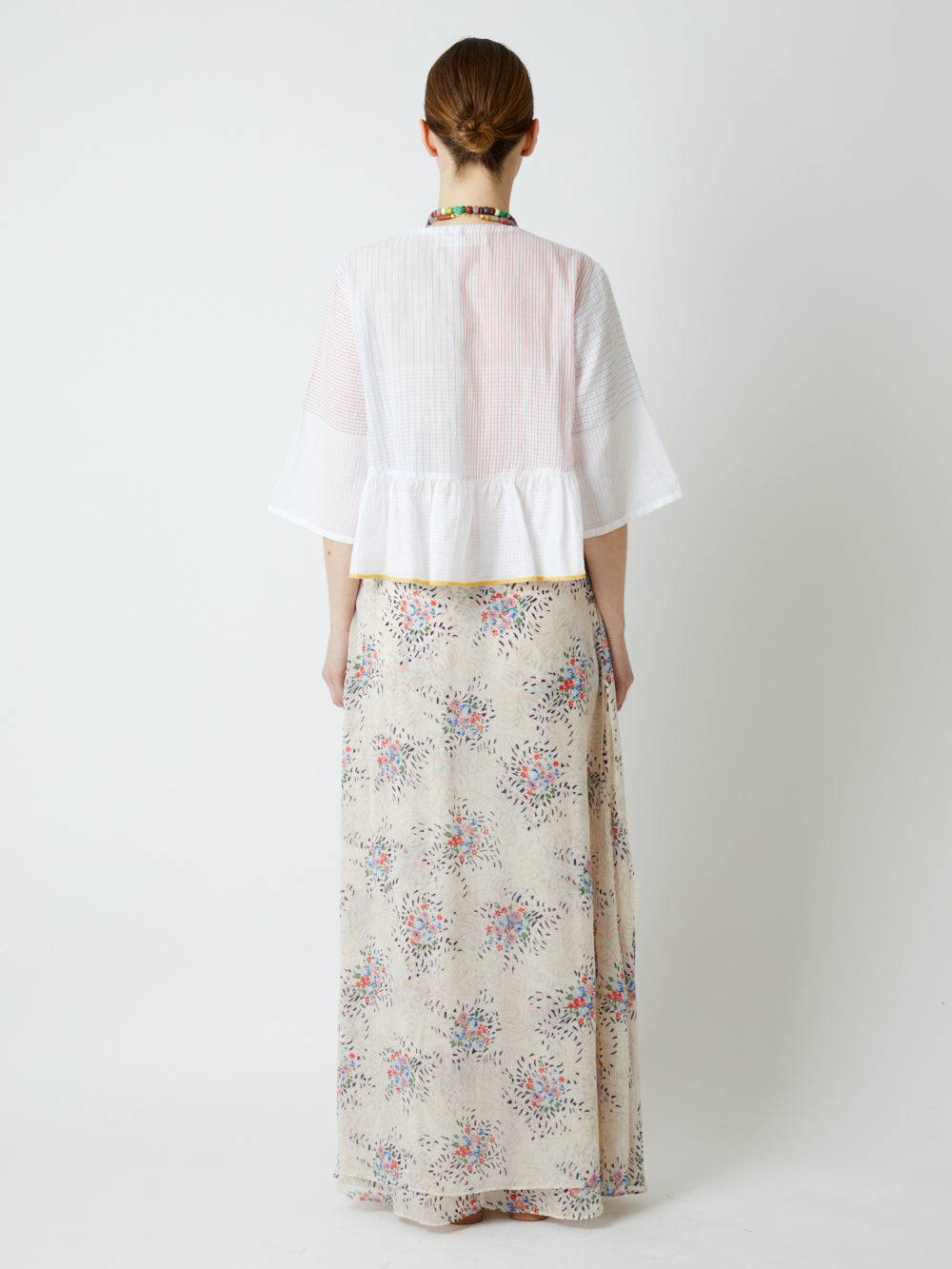 Ama blouse signed Jane Gustavsson made of "Jamdani" hand woven cotton. A Peplum cut top with 3/4 sleeves.