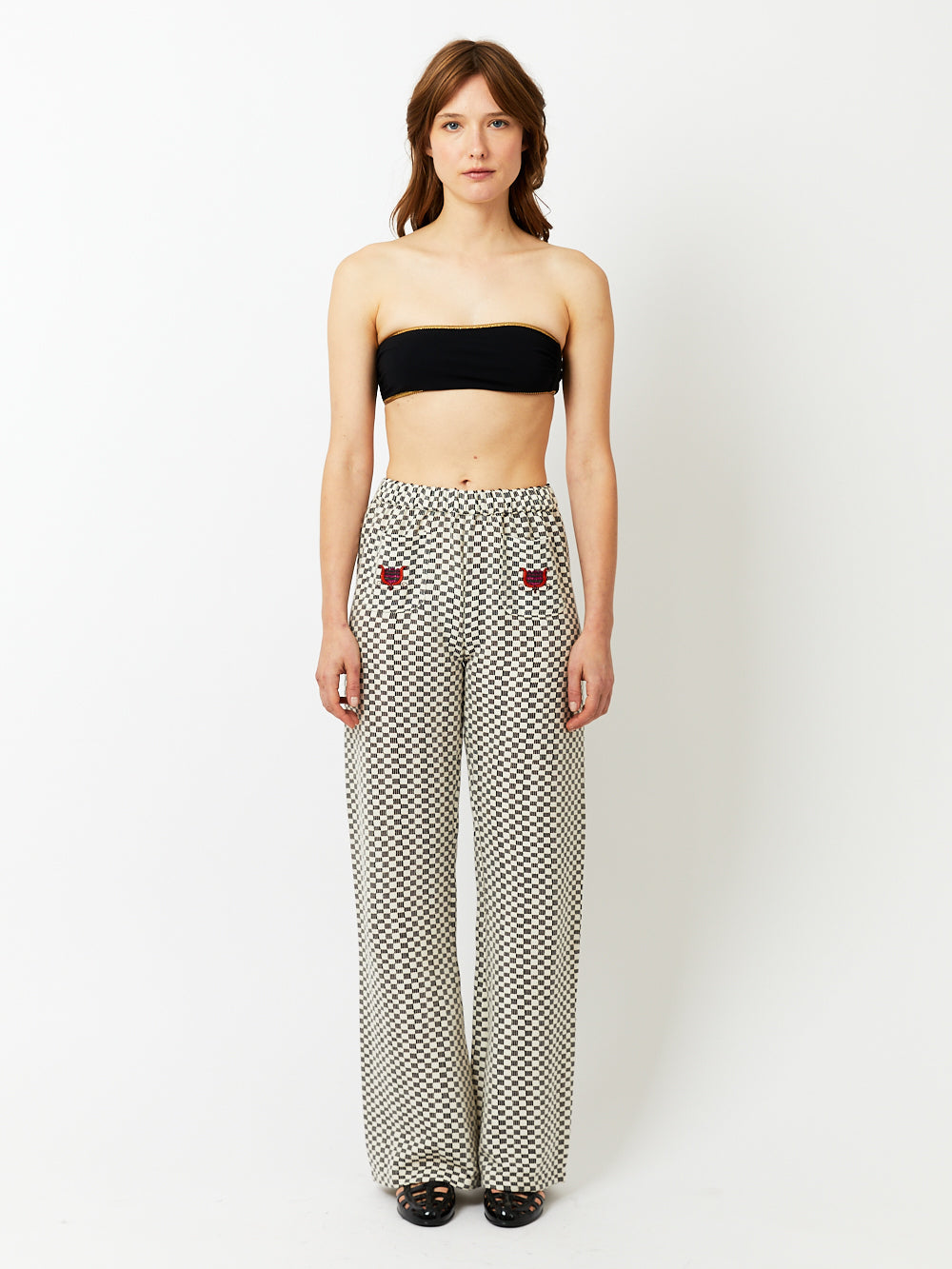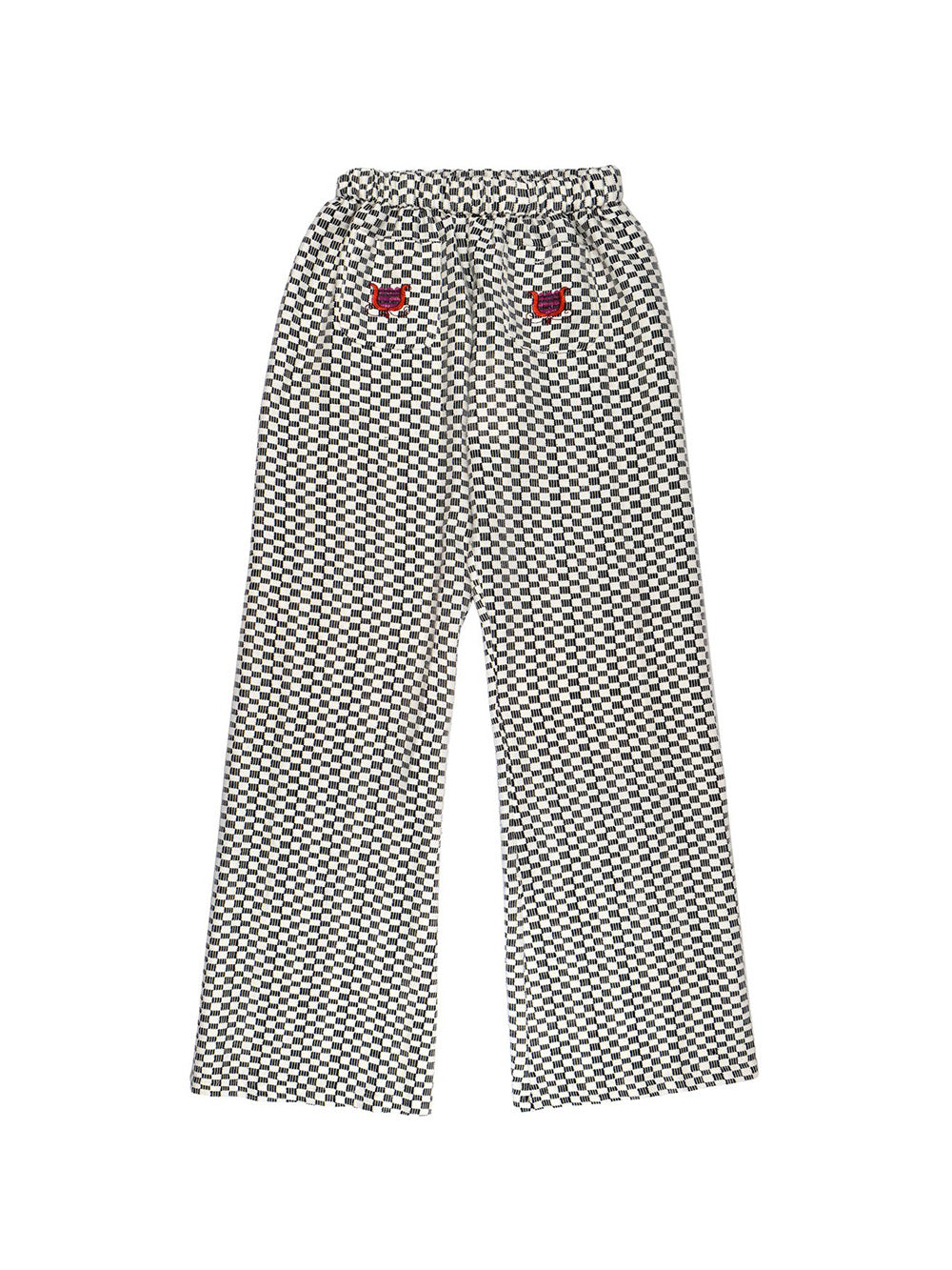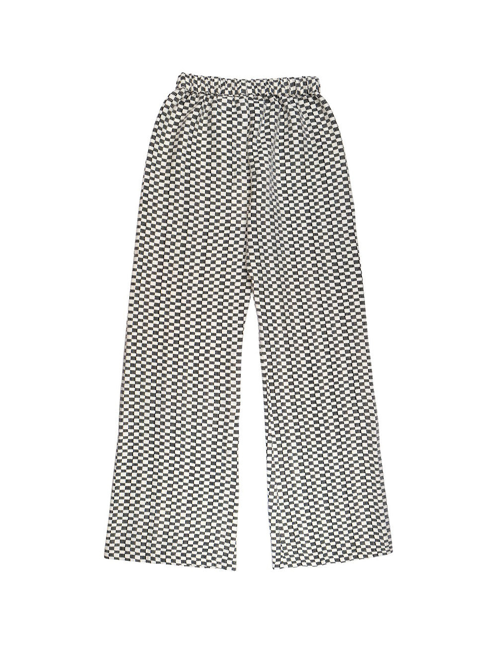 Loco pants by Monoki made from black and white checked cotton. A wide straight cut with an elasticated waist.