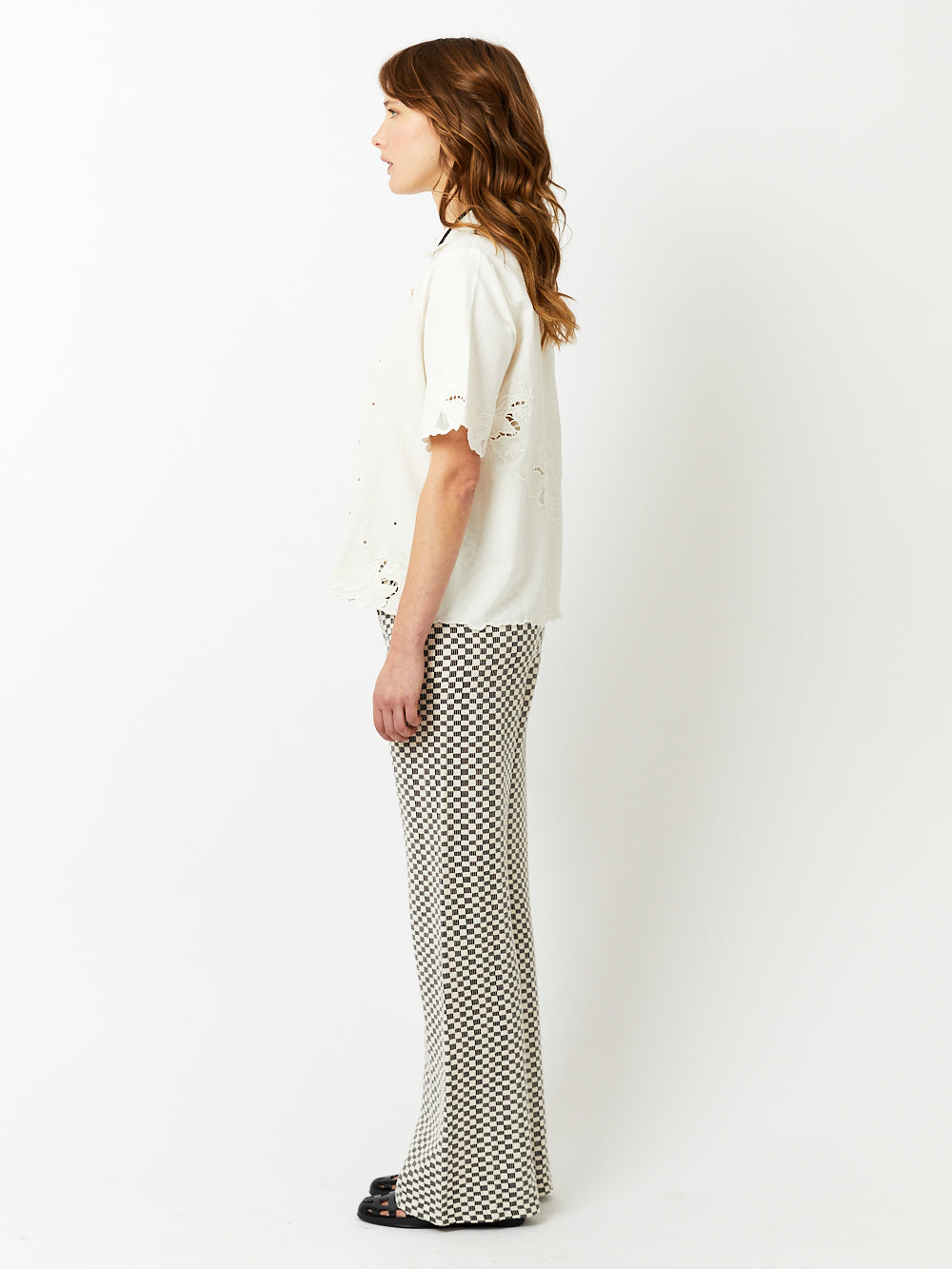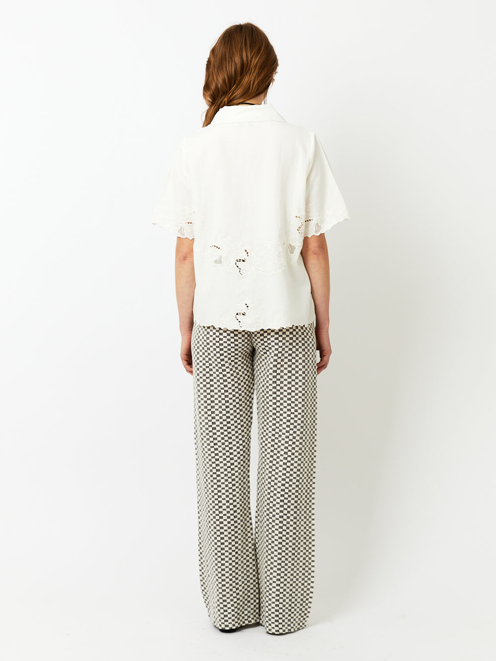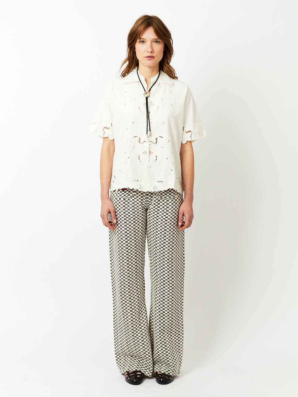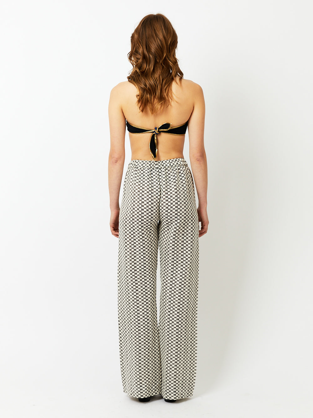 Loco pants by Monoki made from black and white checked cotton. A wide straight cut with an elasticated waist.