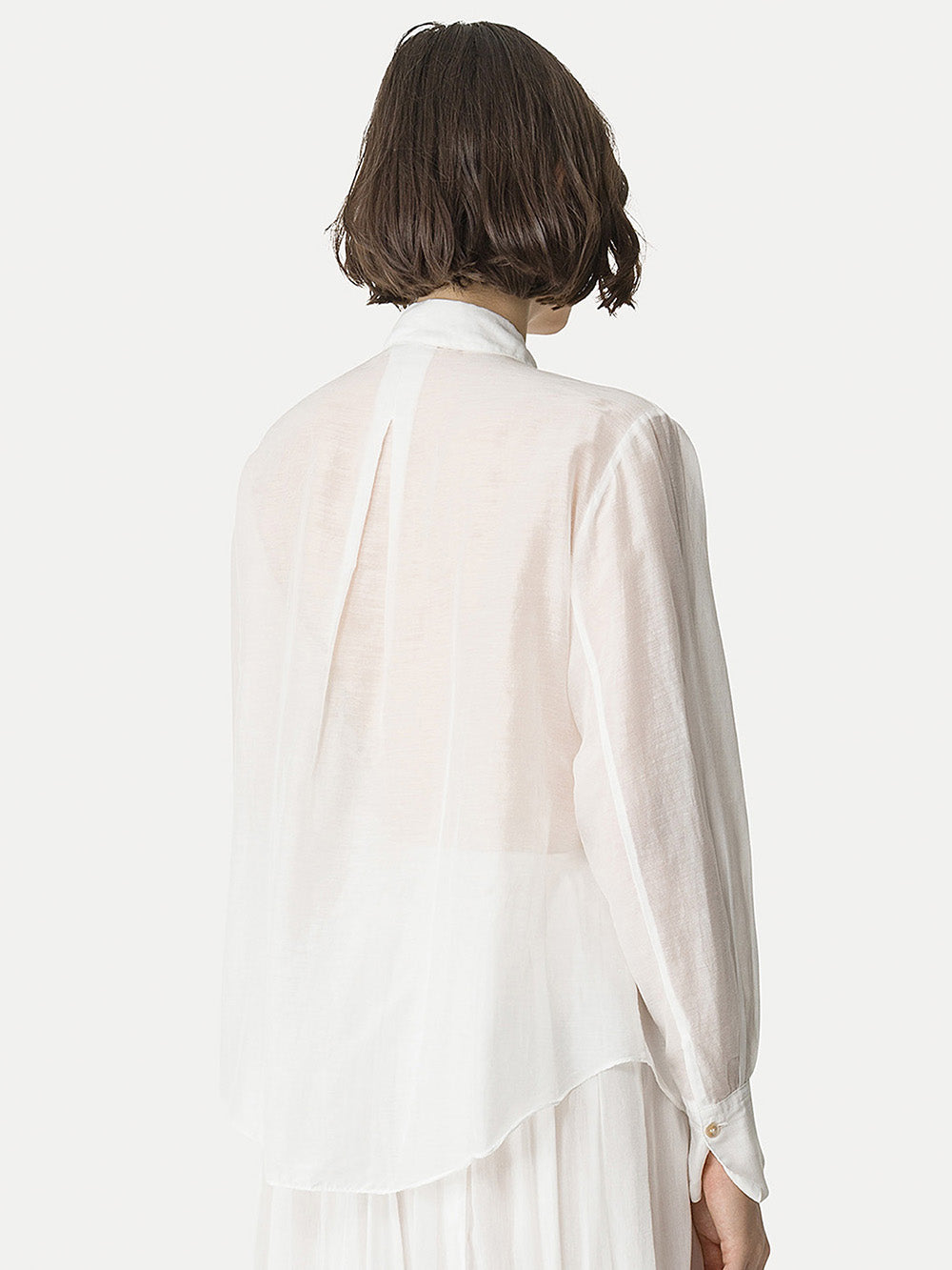 Forte_Forte's trompe l'oeil embroidered shirt is crafted from a white cotton and silk blend. This lightweight shirt features two layers, one embroidered, and scalloped edges.
