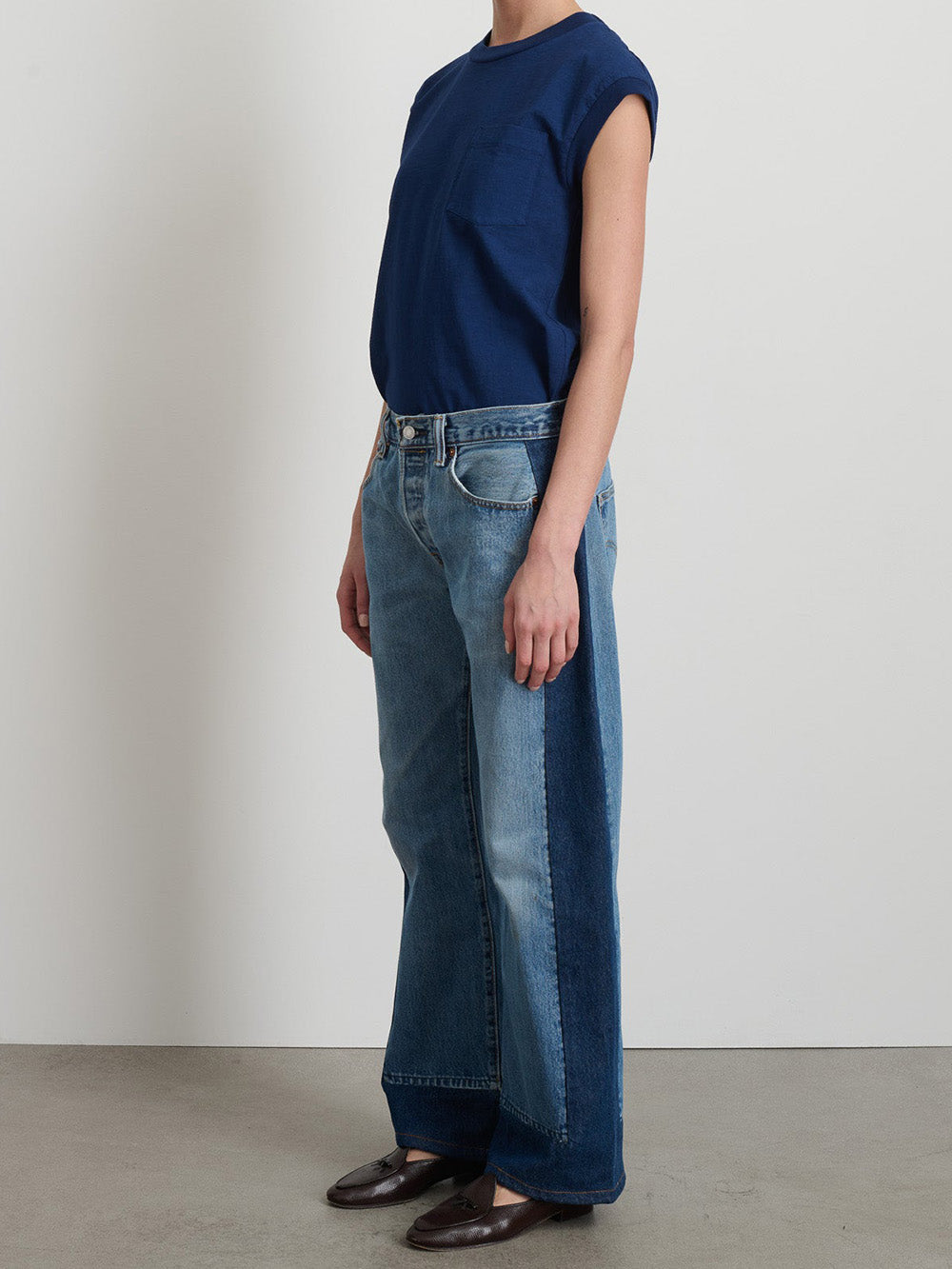 The Reworked Slouch jean from BSIDES is cut from vintage Levi's 501 and 505 denim. Handmade in the USA, each piece is unique. These jeans have a loose fit, a straight leg and a low rise.