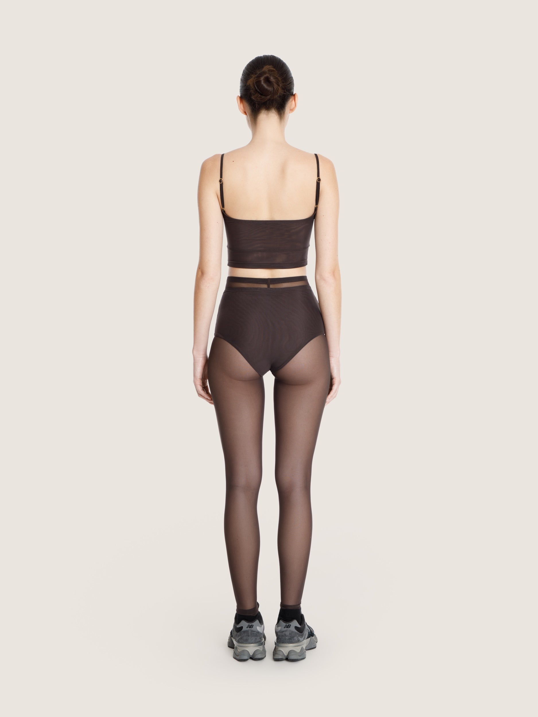 Tulle leggings by Ernest Leoty, made from a lightweight brown mesh. A second-skin cut with sheer texture.