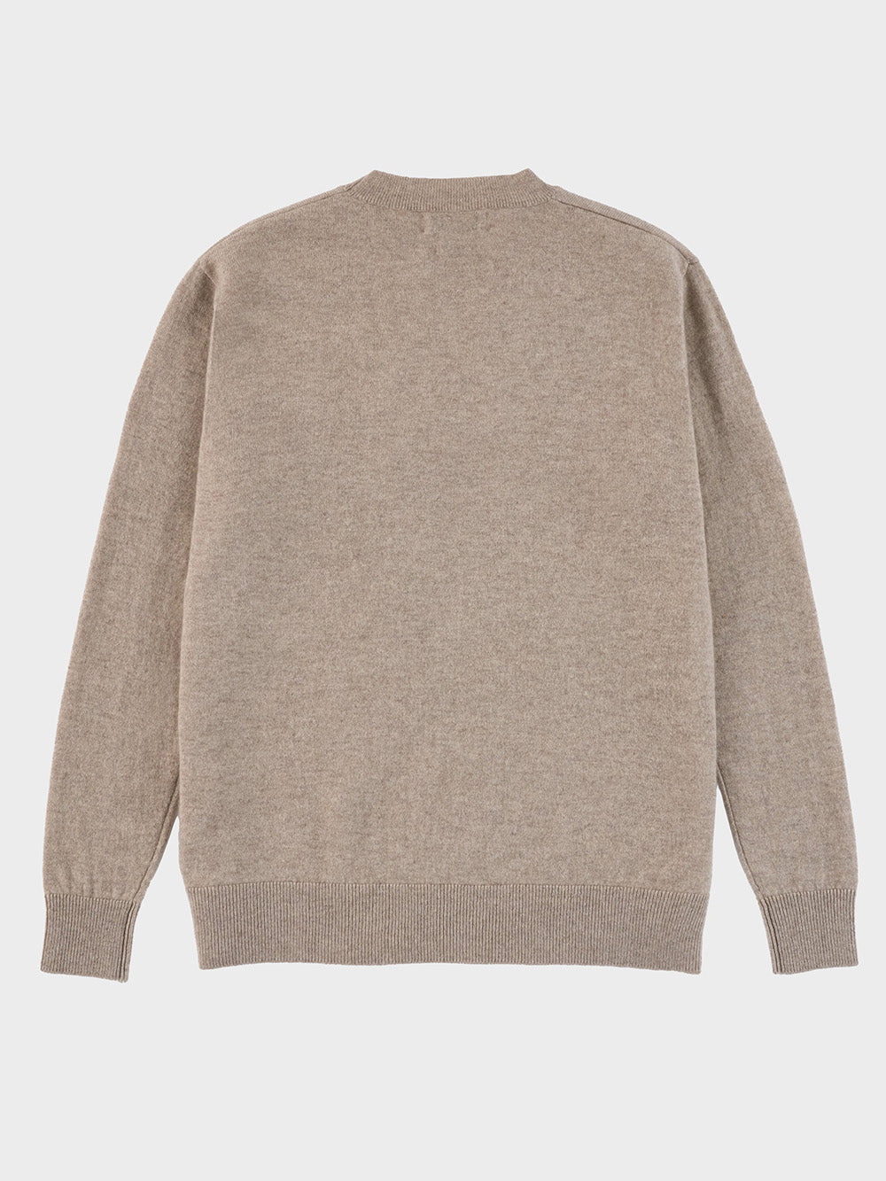 Sweater No. 86 Monkeys of Wisdom by Leret Leret is made from beige cashmere and decorated with the iconic monkeys of wisdom. A sweater with a round neck and long sleeves.