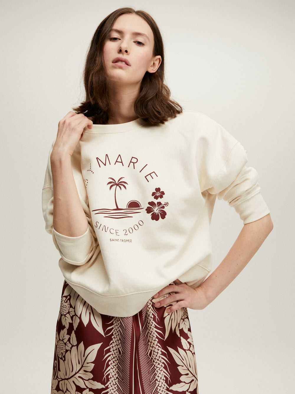 Sweatshirt made of cotton, printed on the front. A collection designed by Marie Gas to celebrate BY Marie's 25th anniversary.