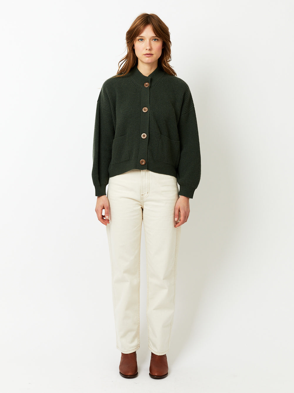The Roy Military Green cardigan signed BY MARIE Collection is made of cashmere and wool.