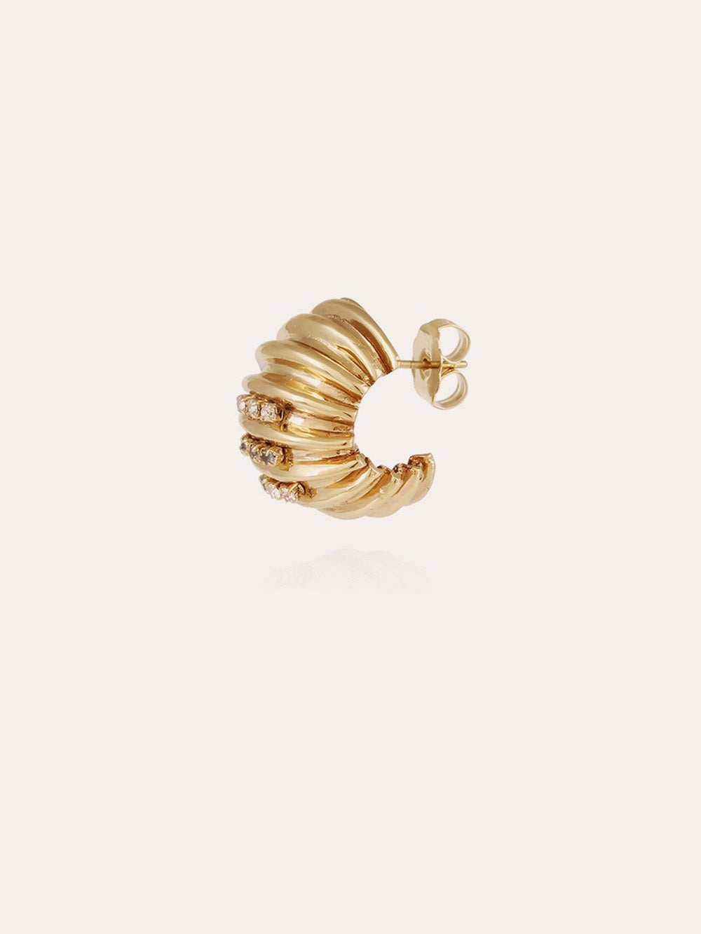 Anne earrings by Gas Bijoux made of fine gold-plated metal, decorated with rhinestones. A creation from the brand's vintage collection inspired by timeless designs and highlighting the artisanal know-how of the Marseille workshop house.