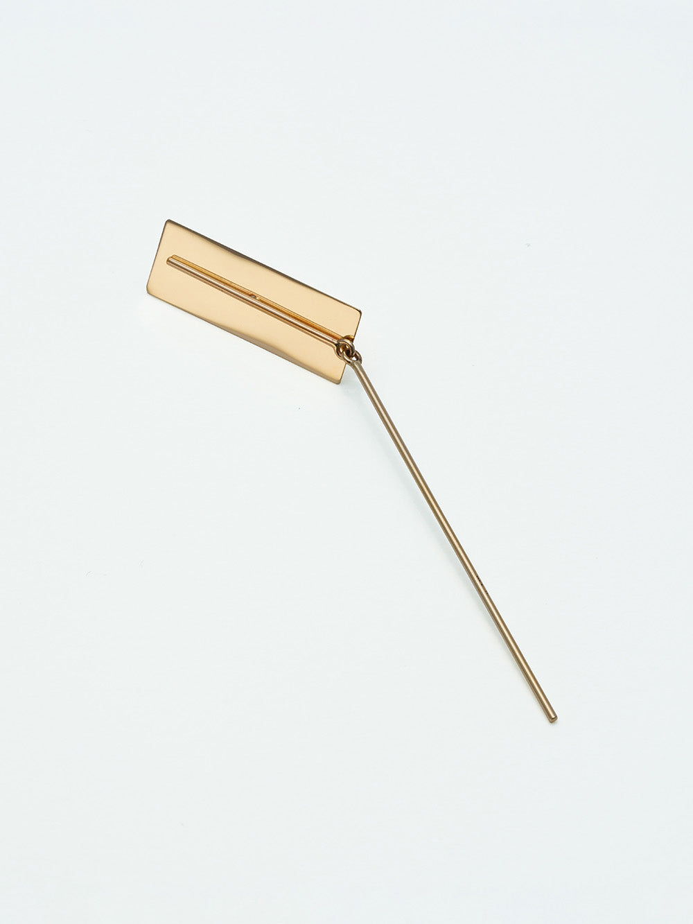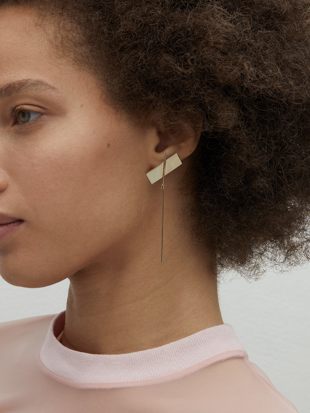 Boucle d'Oreille Stick & Plaque signée Kathleen Whitaker confectionnée en or jaune 14 carats. Une boucle d'oreille moderne de la collection modulable de la créatrice.