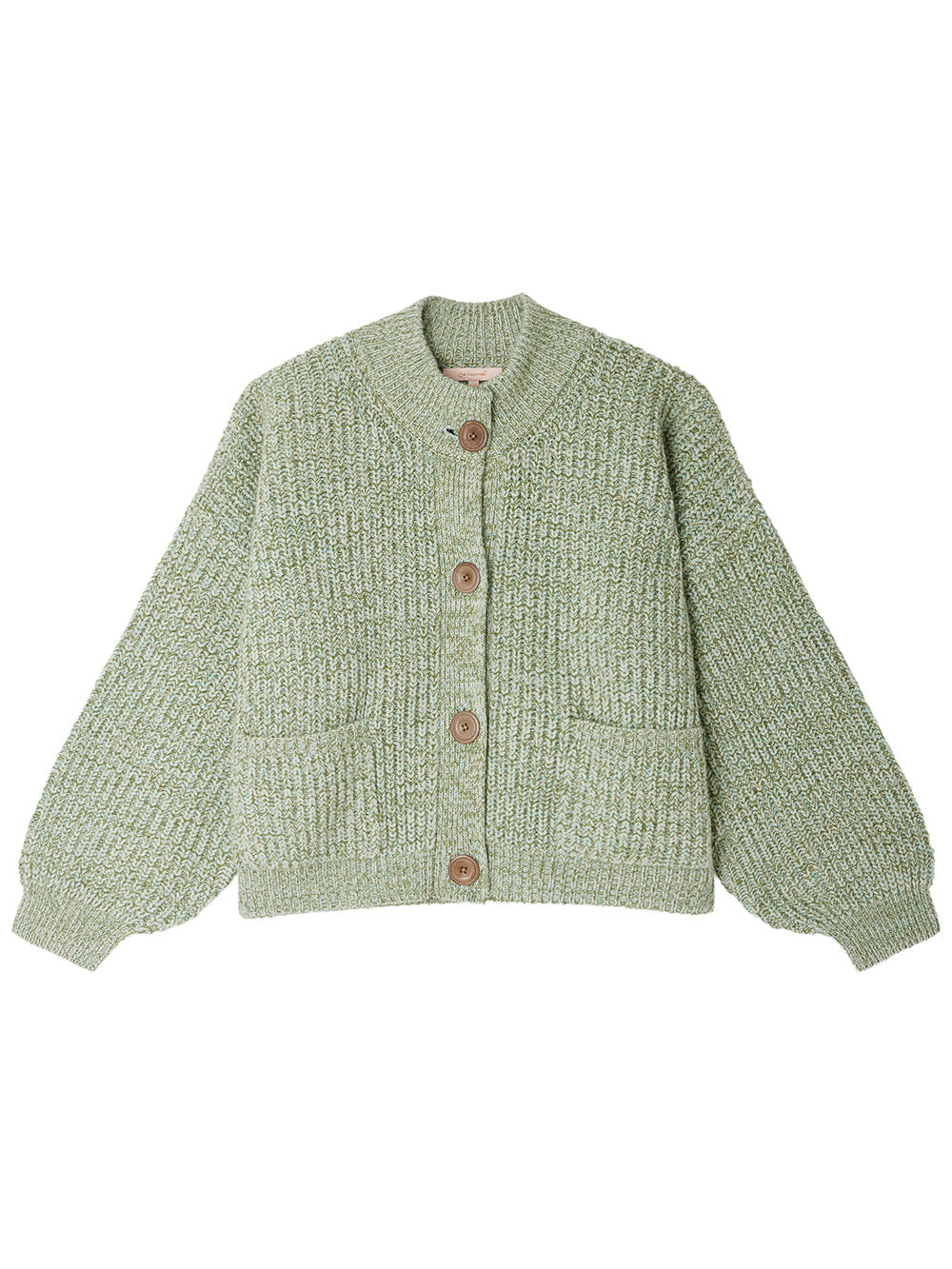 The Chiné Green Roy cardigan signed BY MARIE Collection is made of cashmere and wool.