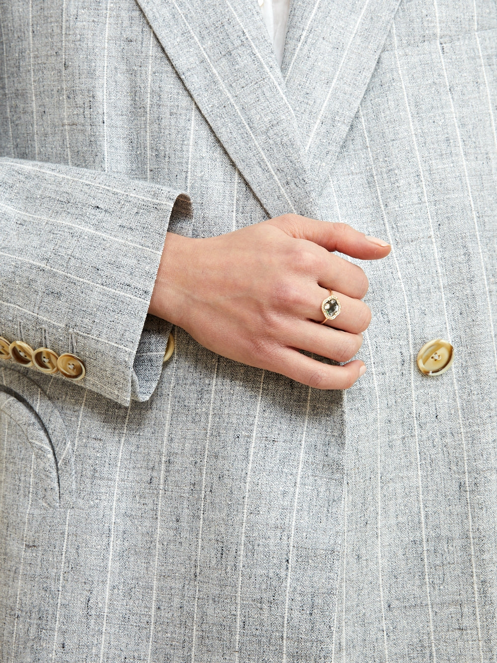 The Stella Céline Daoust Grey Diamond ring in 14k yellow gold. Each gemstone has been hand-selected by Céline during her travels abroad.