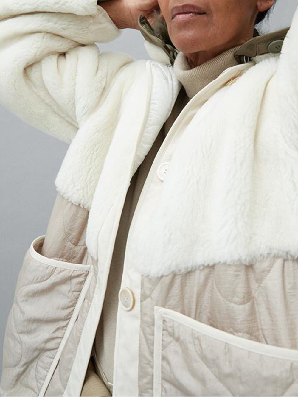 Marfa Stance reversible quilted alpaca jacket. This colorblock quilted jacket in Alpaca can be worn in multiple ways to adapt to every season. Reversible, this jacket can be worn in different ways: in a sportswear look with its quilted effect in water-repellent material or more chic and cocooning by combining nylon and alpaca.