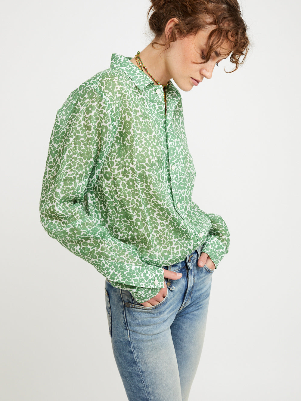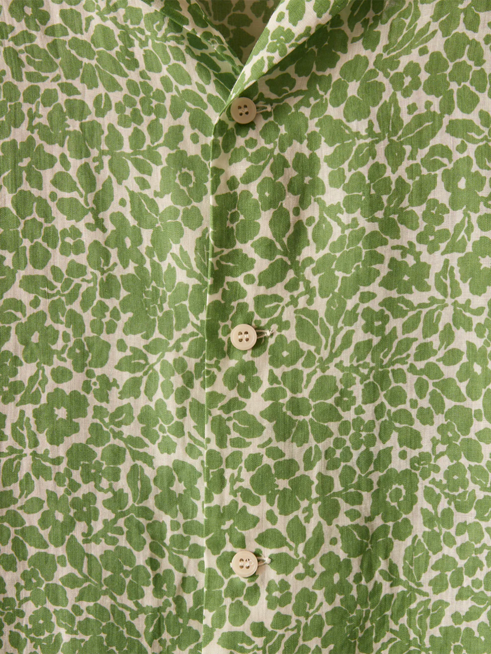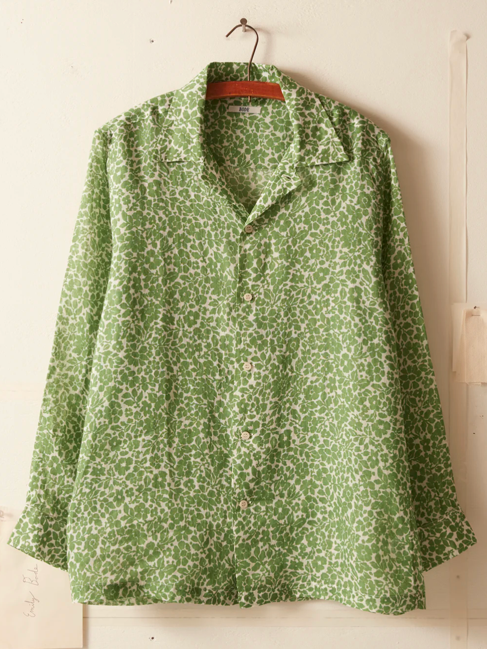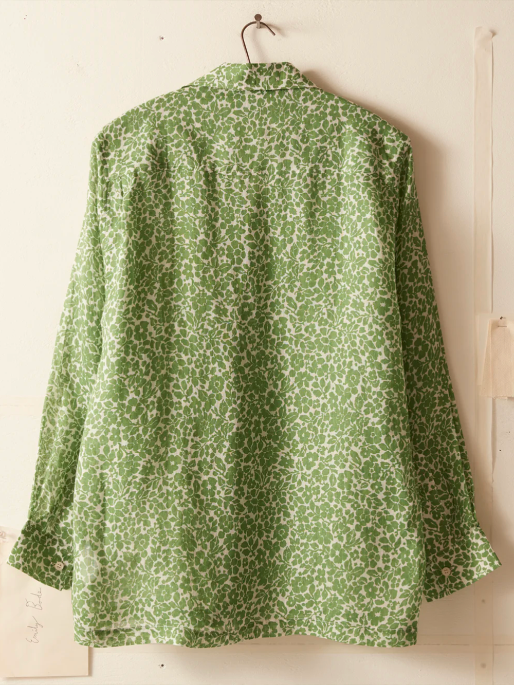 This Green Meadow shirt by Bode is inspired by a remnant fabric from the 1940s. They recreated the original pattern - a green and white floral - for this shirt.