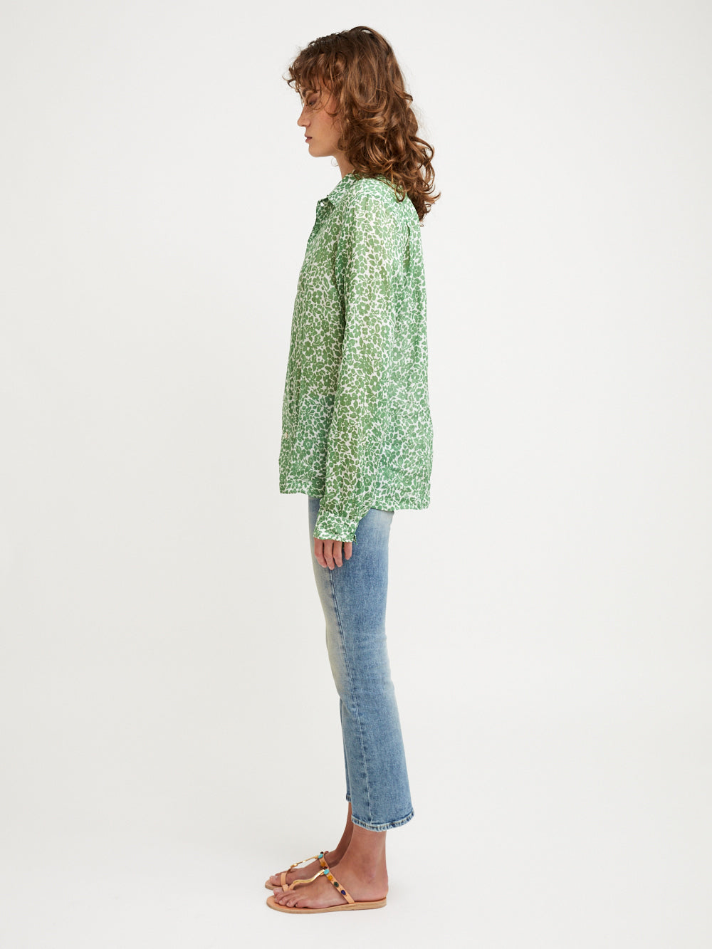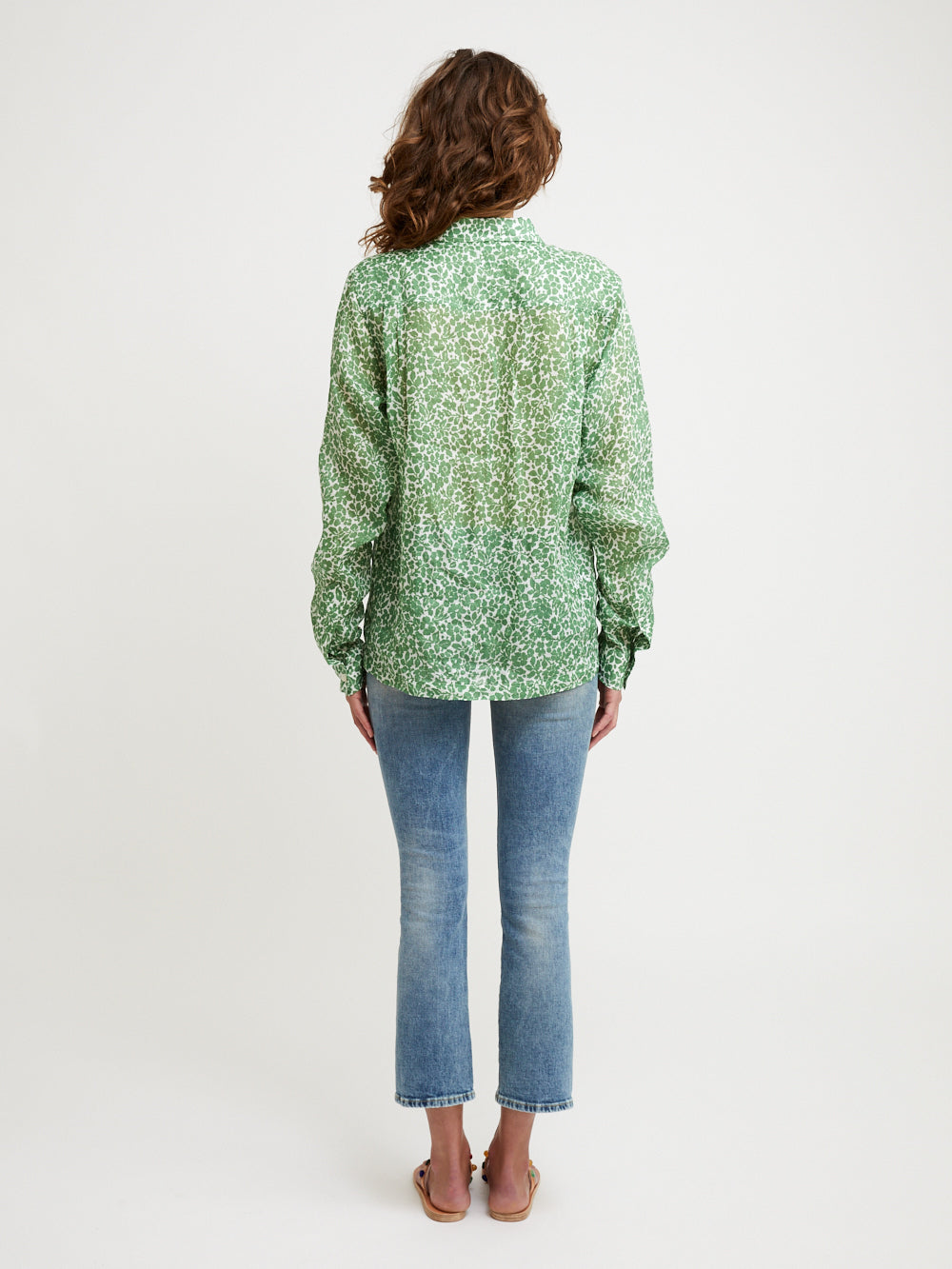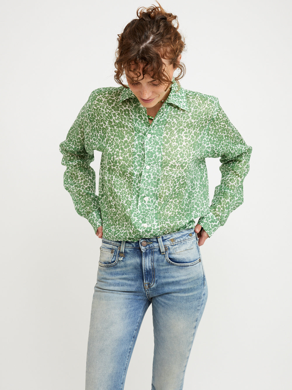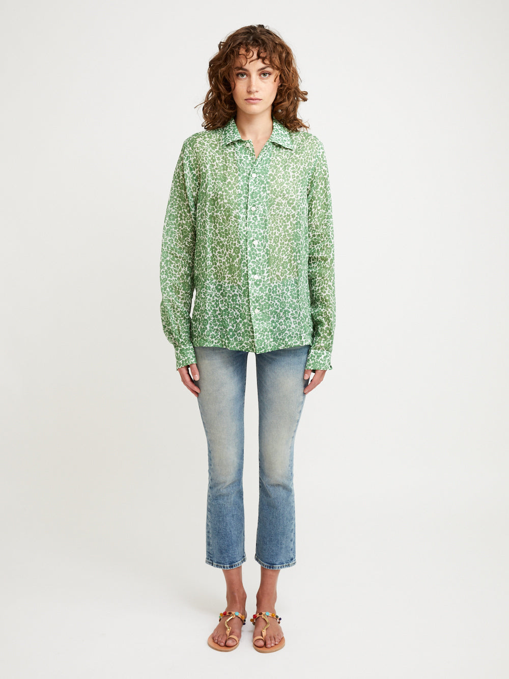 This Green Meadow shirt by Bode is inspired by a remnant fabric from the 1940s. They recreated the original pattern - a green and white floral - for this shirt.