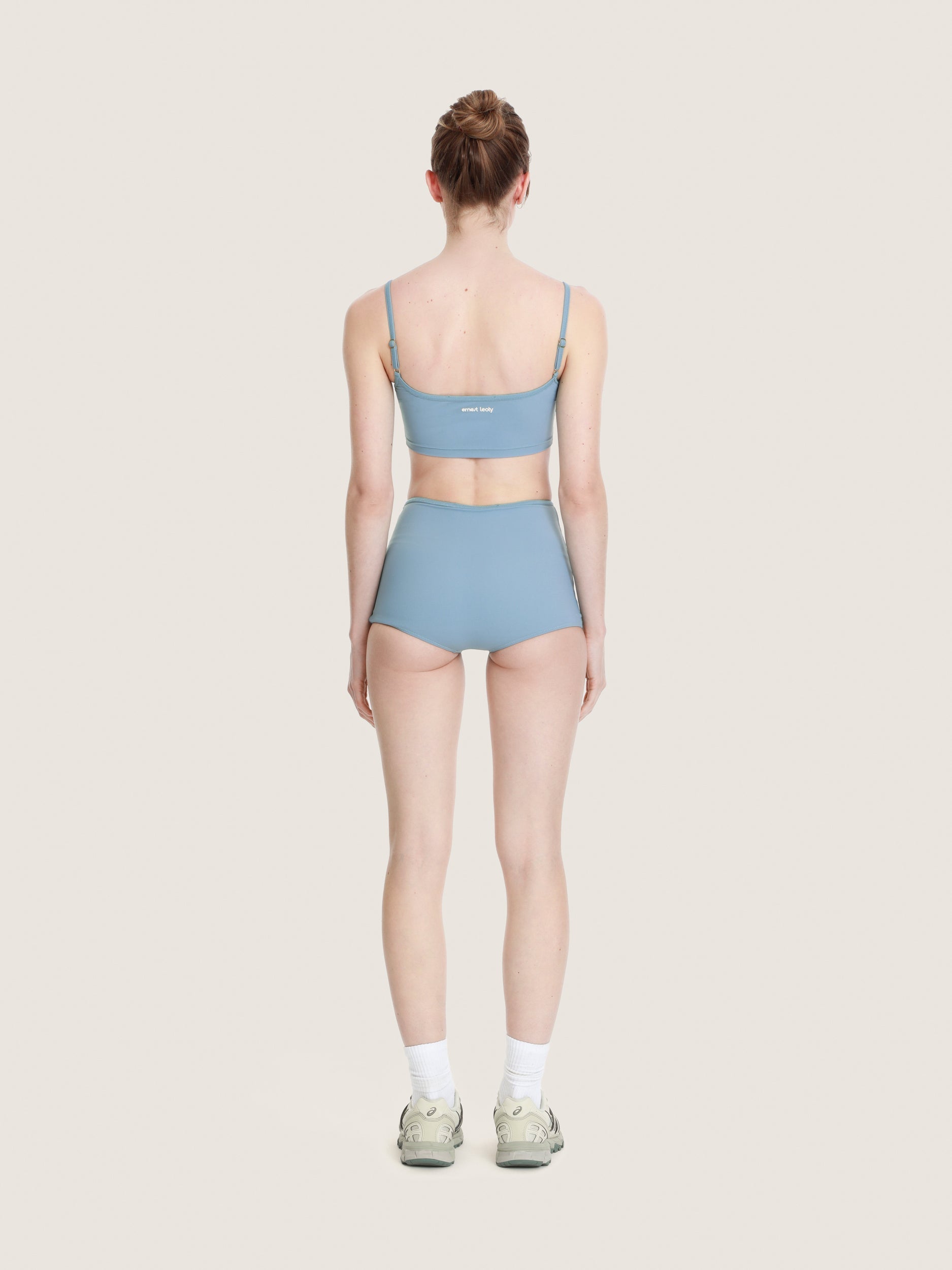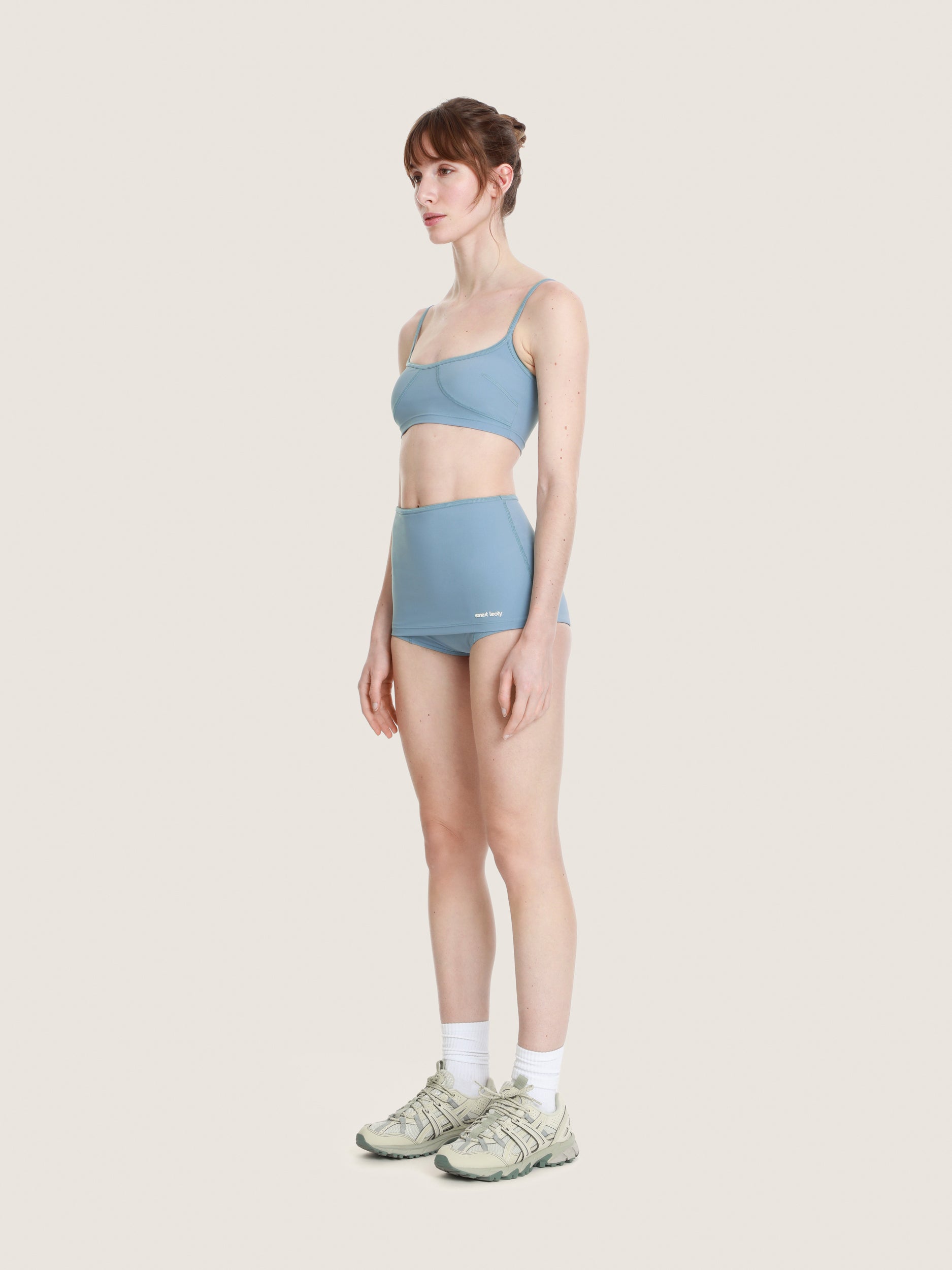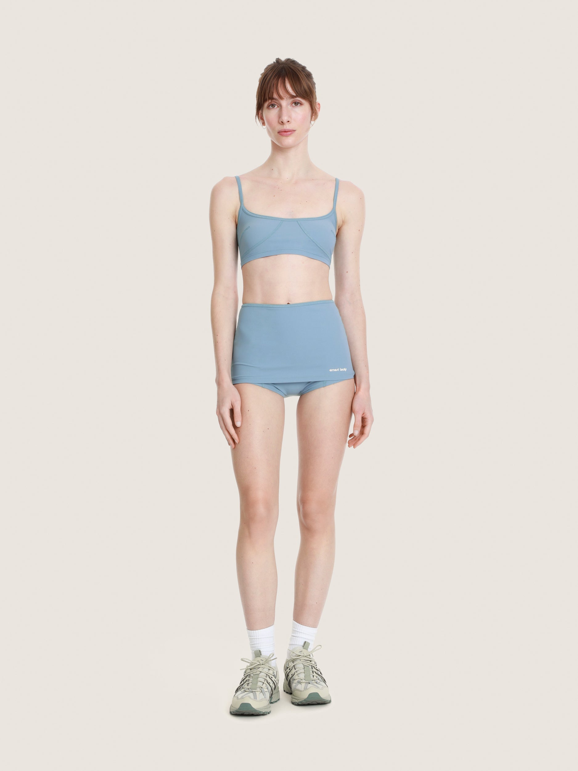 Swim skirt by Ernest Leoty made from a sky blue stretch fabric. A shorts skirt designed to be worn as a swimsuit or for sports.