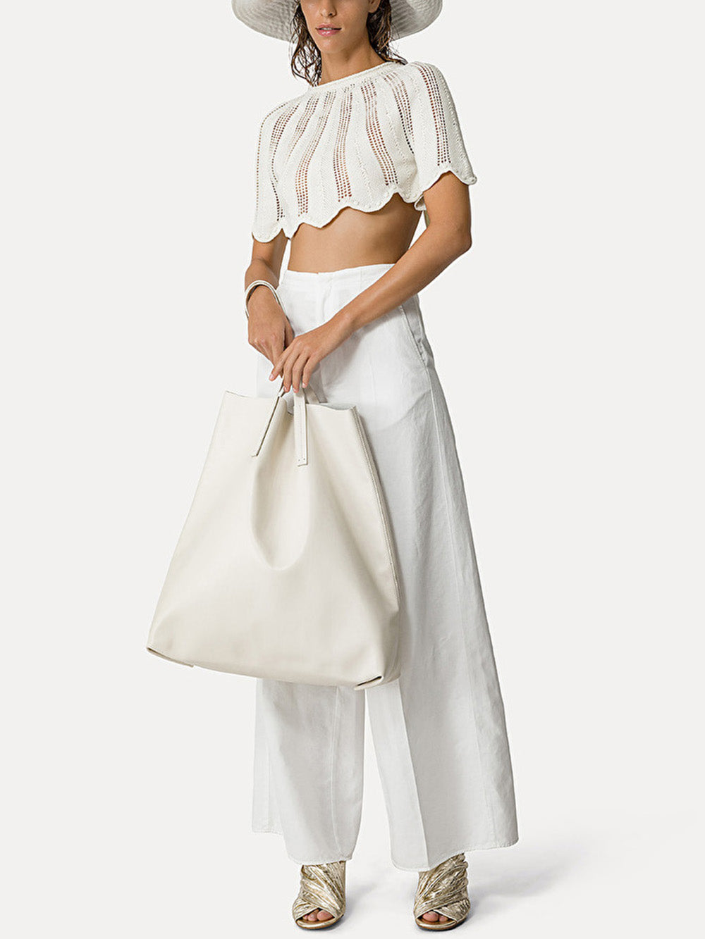 PALAZZO TROUSERS IN WHITE COTTON GABARDINE