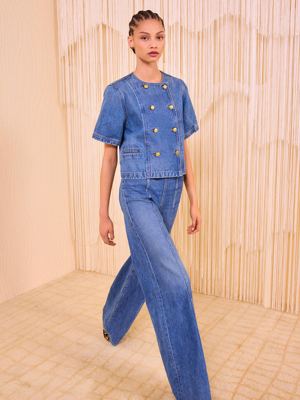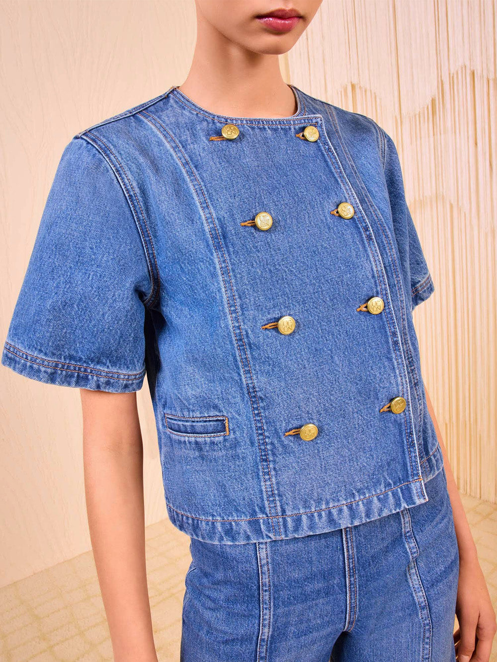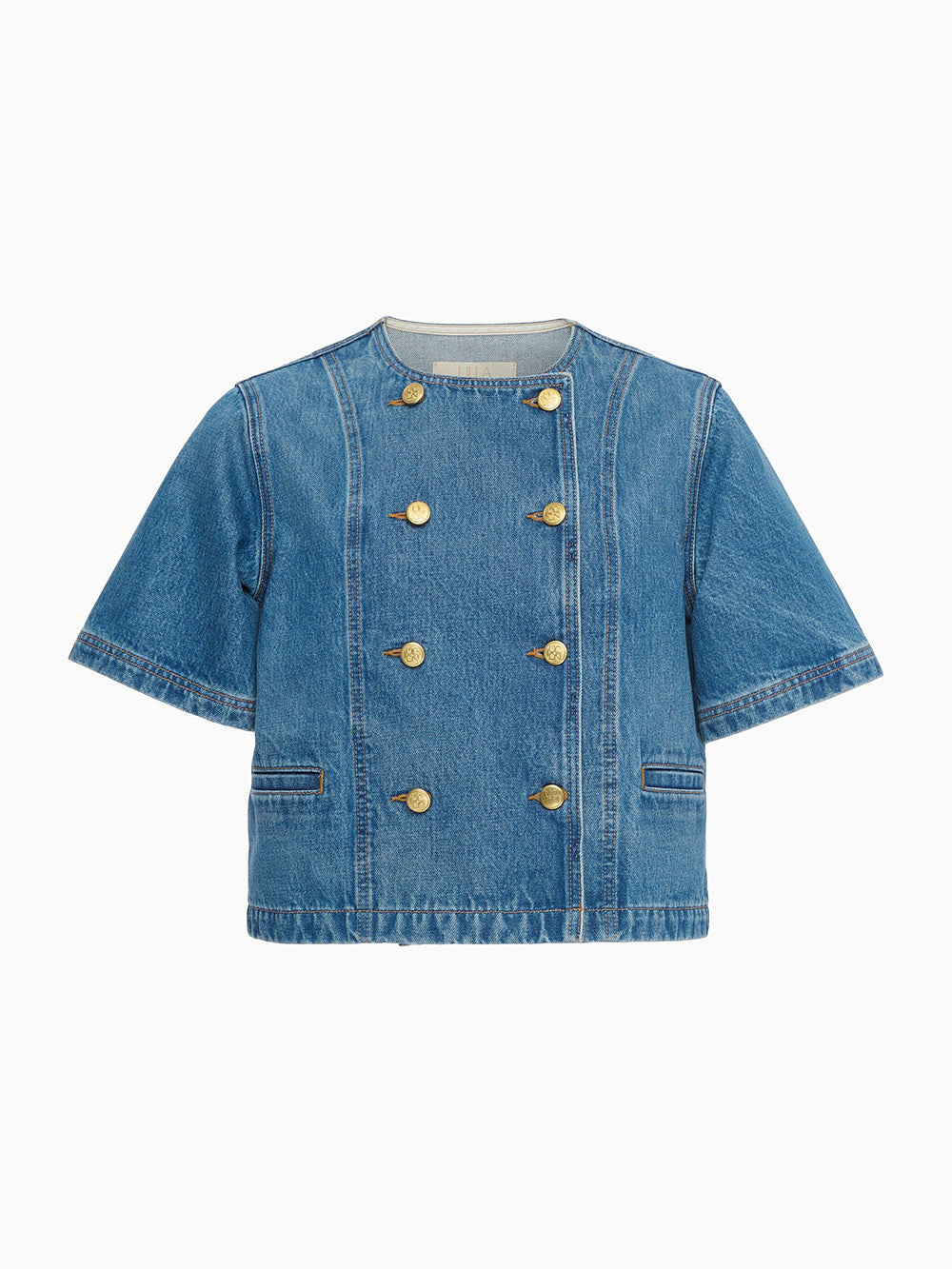 Ulla Johnson's Serge Danube jacket is handcrafted in Los Angeles from premium indigo denim. A cropped jacket with a double-button front.