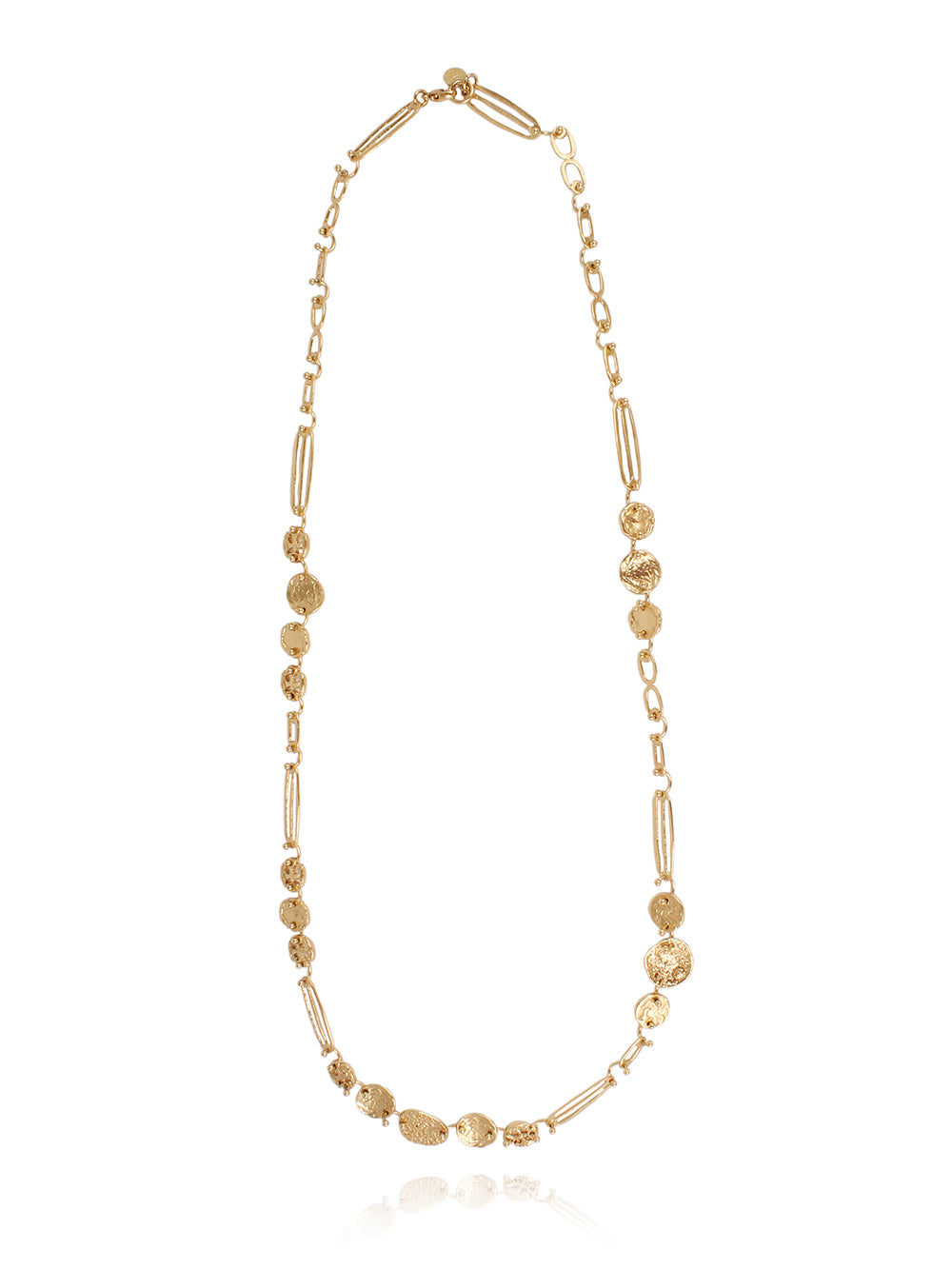 This Eclipse necklace made by Gas Bijoux is a golden necklace with fine gold and composed of thin links and deformed hammered rounds.