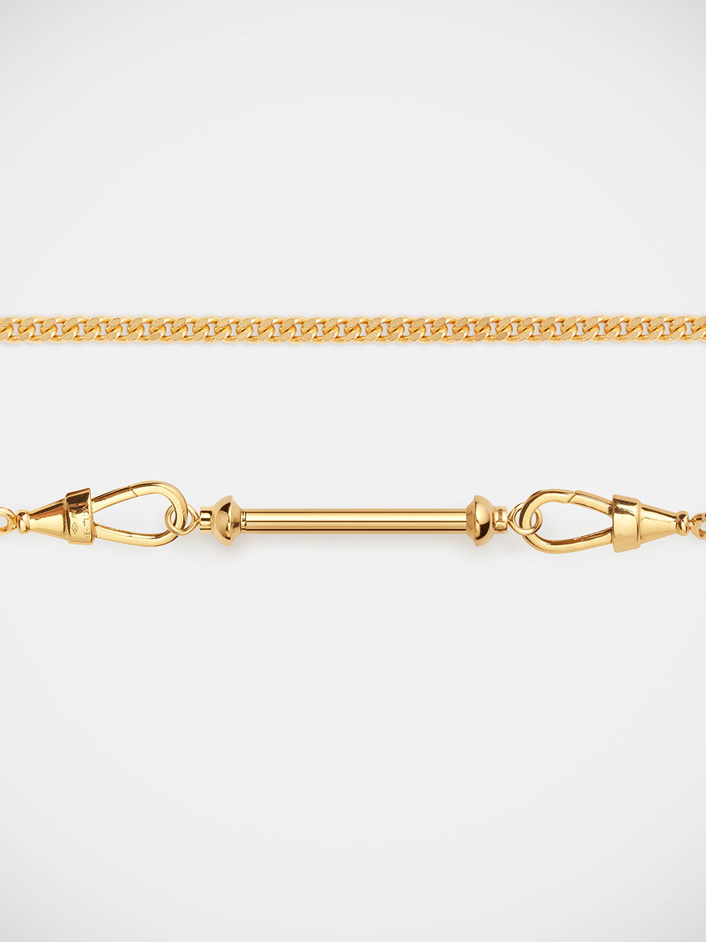 Medium connector, designed by Marie Lichtenberg and crafted in 18-karat yellow gold. A bar with a screw mechanism for stacking charms and pendants. Sold on a 37cm curb chain. - Pendant length: 3.3cm - Part guaranteed for 2 years from the date of purchase upon presentation of the invoice - Shipped in a jewelry box with a certificate of authenticity