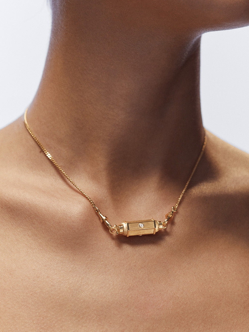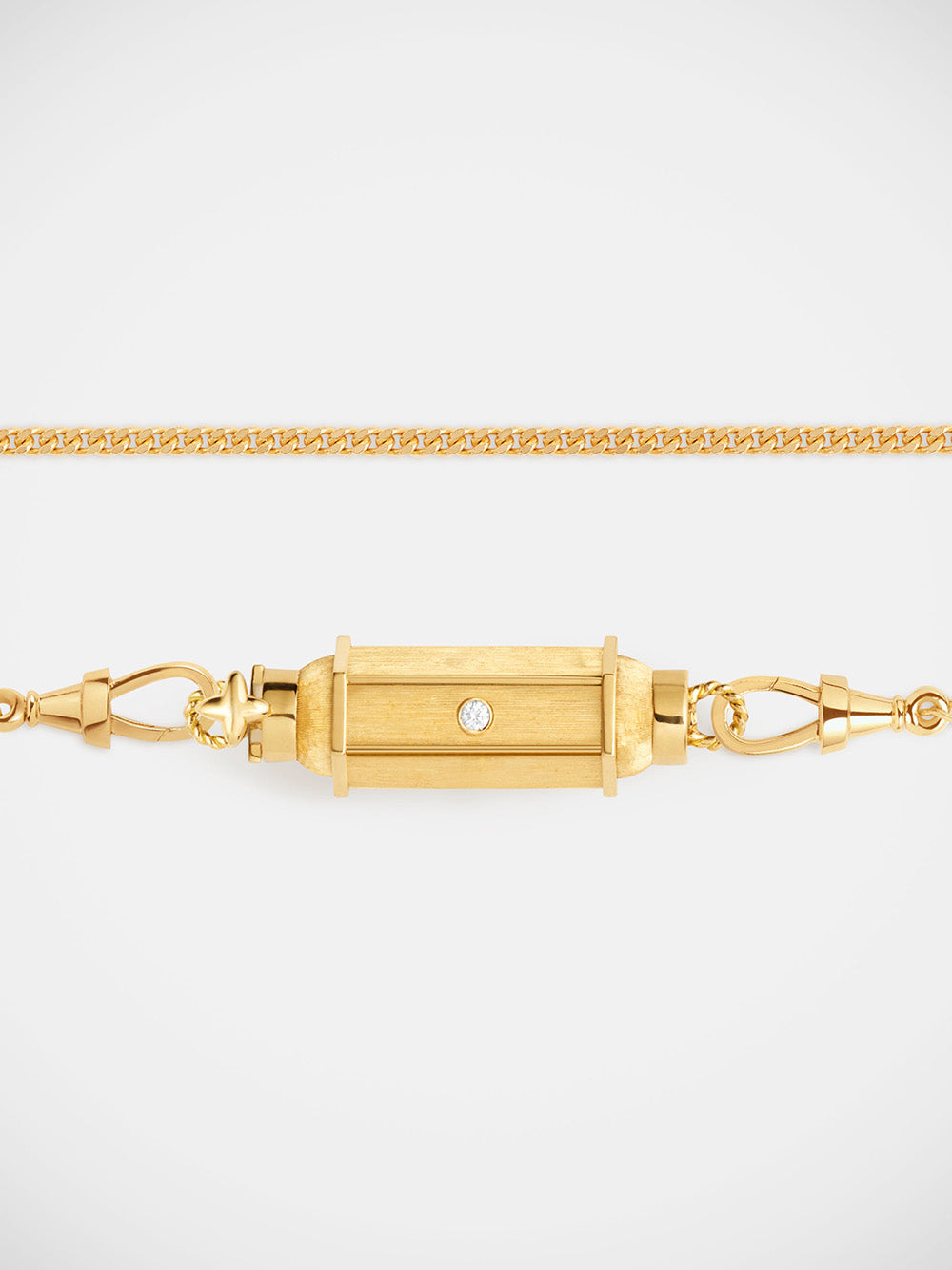 Marie Lichtenberg's Coco Diamant Baby Locket is crafted in brushed 18-carat yellow gold set with three small white diamonds. Sold on a matching 37cm curb chain. - 3 GSI1 diamonds, 0.06 carat - Dimensions: 2.8cm x 1cm - Part guaranteed for 2 years from the date of purchase upon presentation of the invoice - Sent in a jewelry box with certificate of authenticity