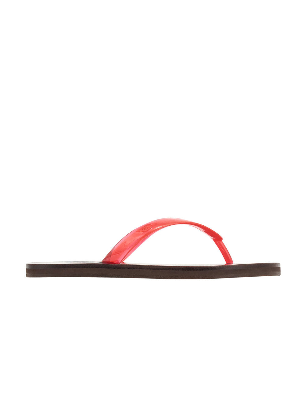 Saionara Jelly sandals by Ancient Greek Sandals made from transparent red rubber mounted on a black leather sole.