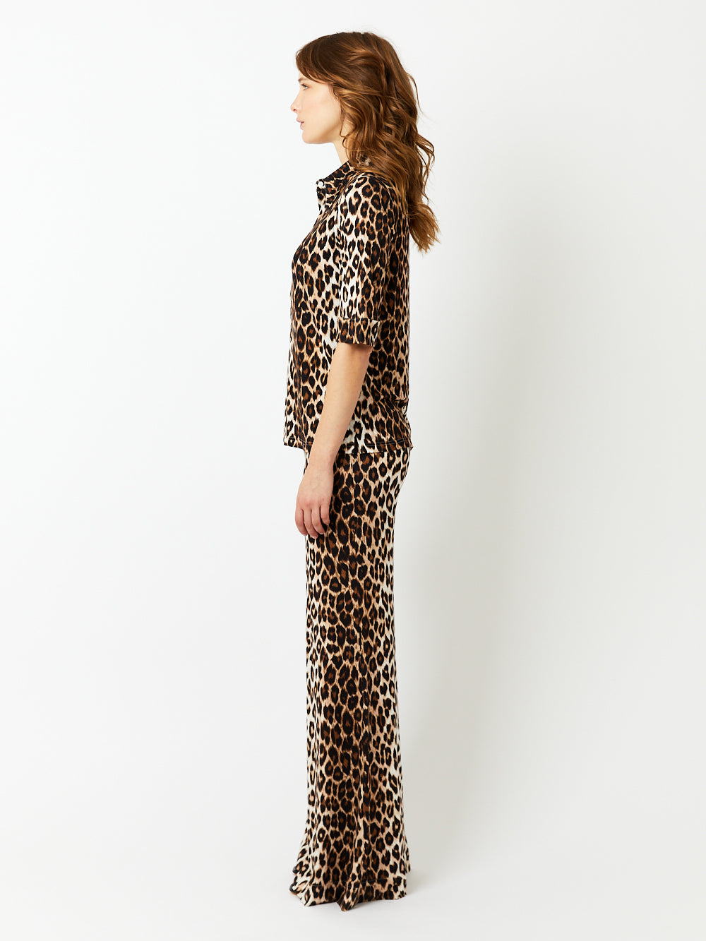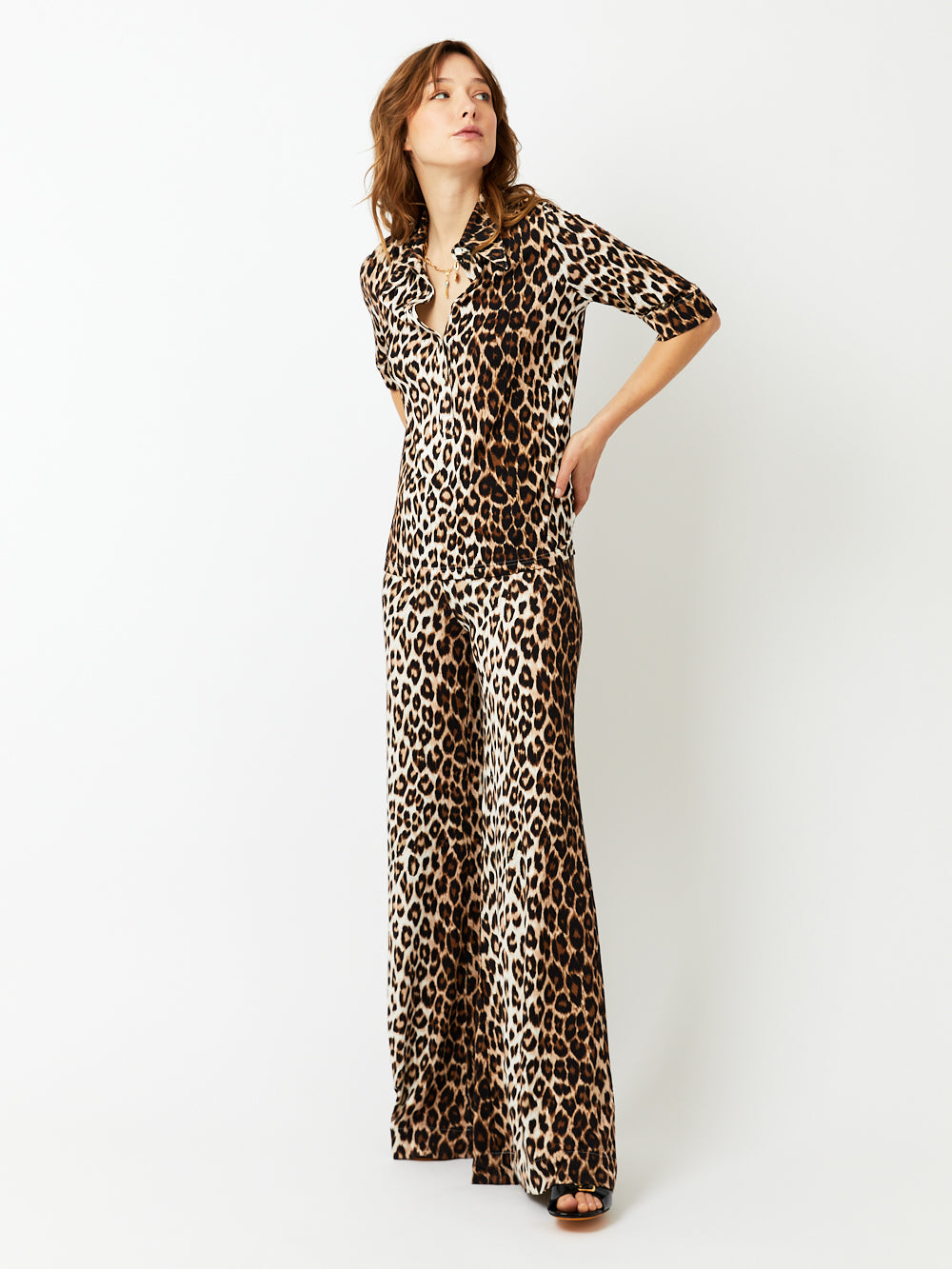 Lauren Panthère shirt by La Prestic Ouiston made from viscose jersey with a panther print. Polo-style cut with mid-length sleeves.