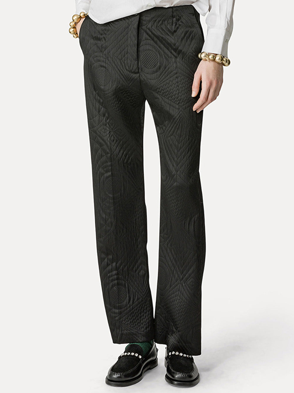 Quilted Couture Pants signed Forte_Forte made in a black jacquard fabric. A straight cut with an aesthetic inspired by the 1950s.
