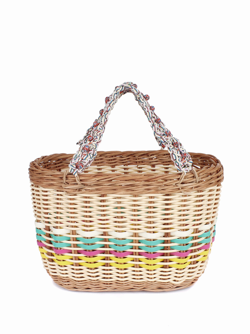 -Multicolored braided cotton handles decorated with small pearls