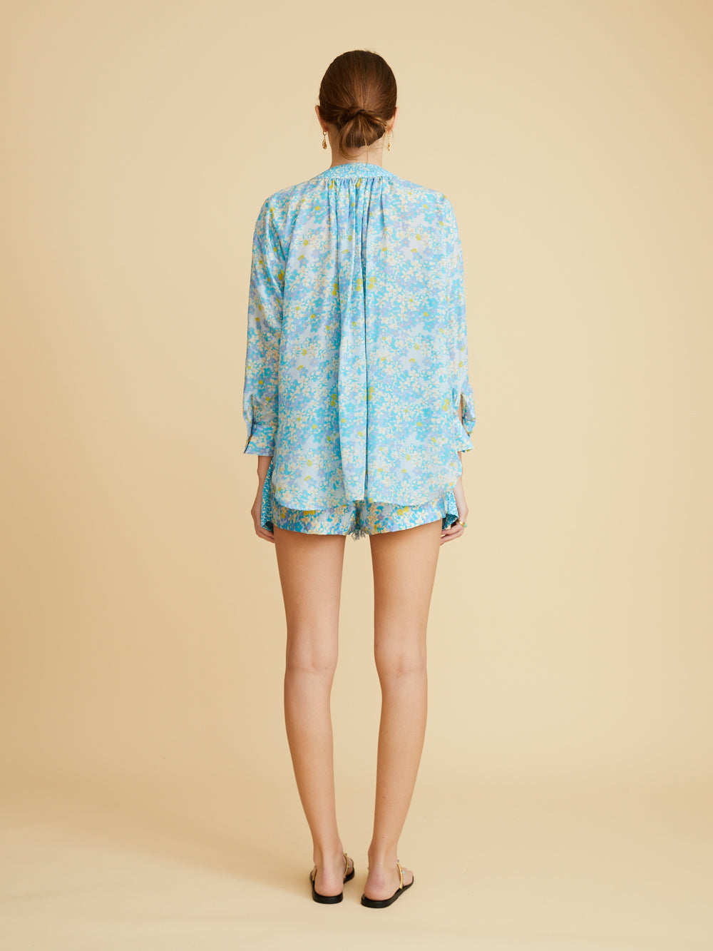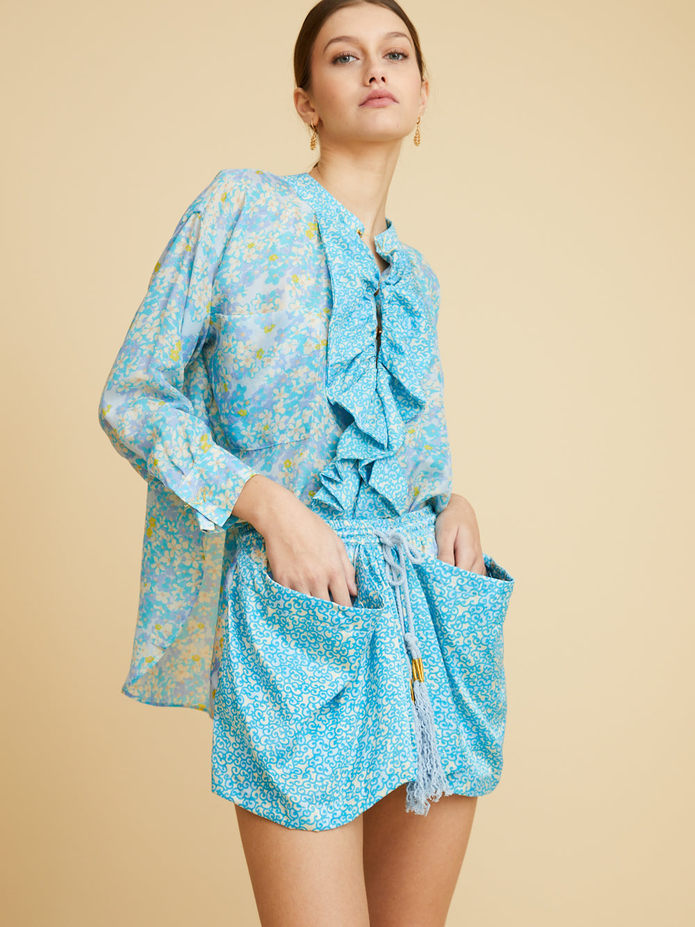 These Tiny Spiral printed culotte shorts are cut from a lightweight silk.These shorts have a loose, cropped fit. large front pockets, an elasticated waistband and a drawstring waistband make this style comfortable and easy to put on, perfect for summer.