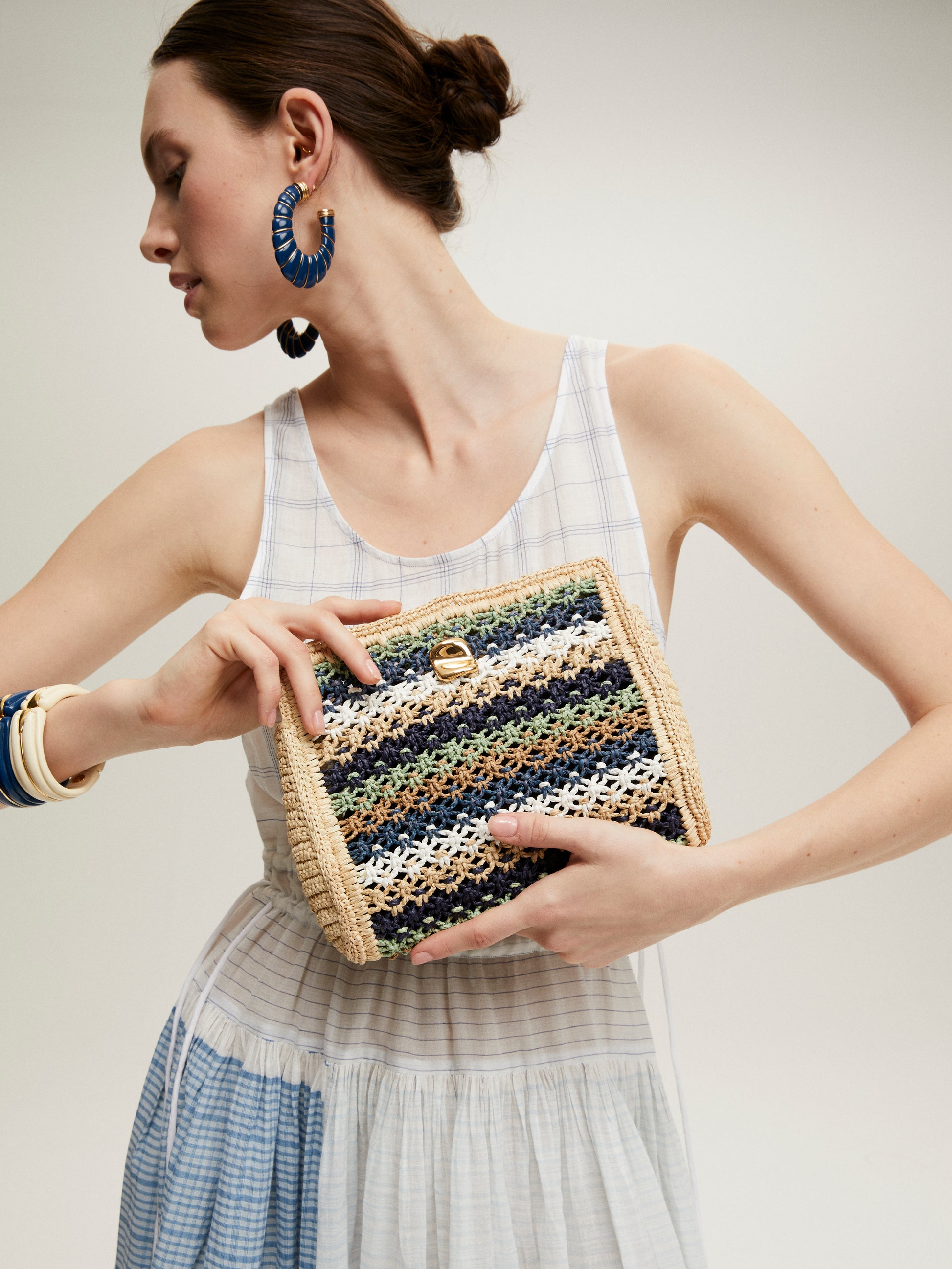 Bamboo pouch by Gas Bijoux, handcrafted from raffia, enhancing the material with a refined play of knots tied using traditional craftsmanship.